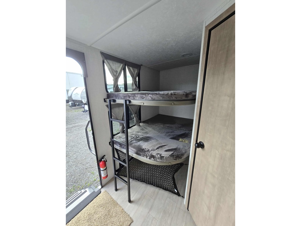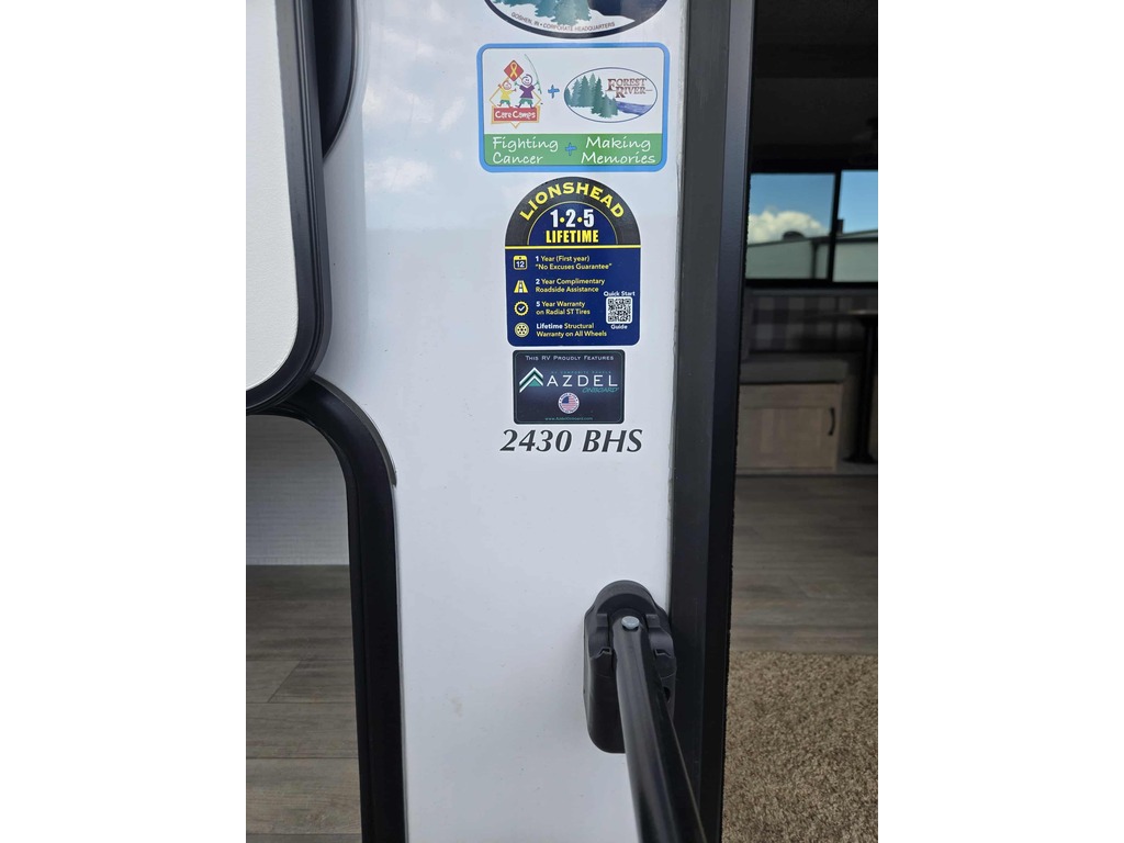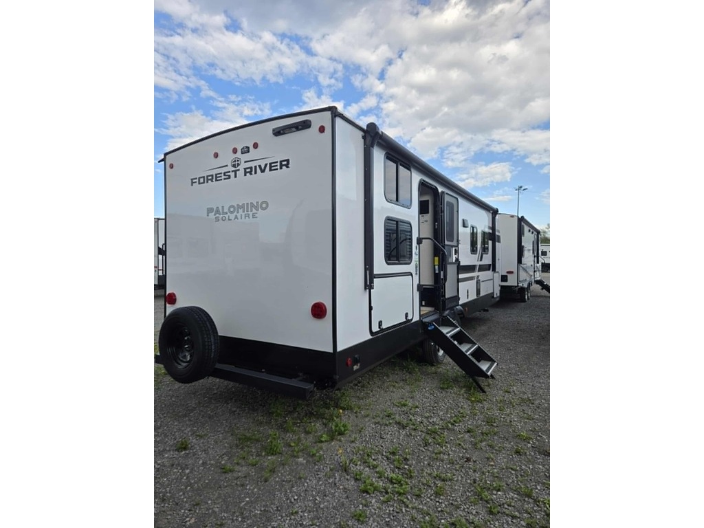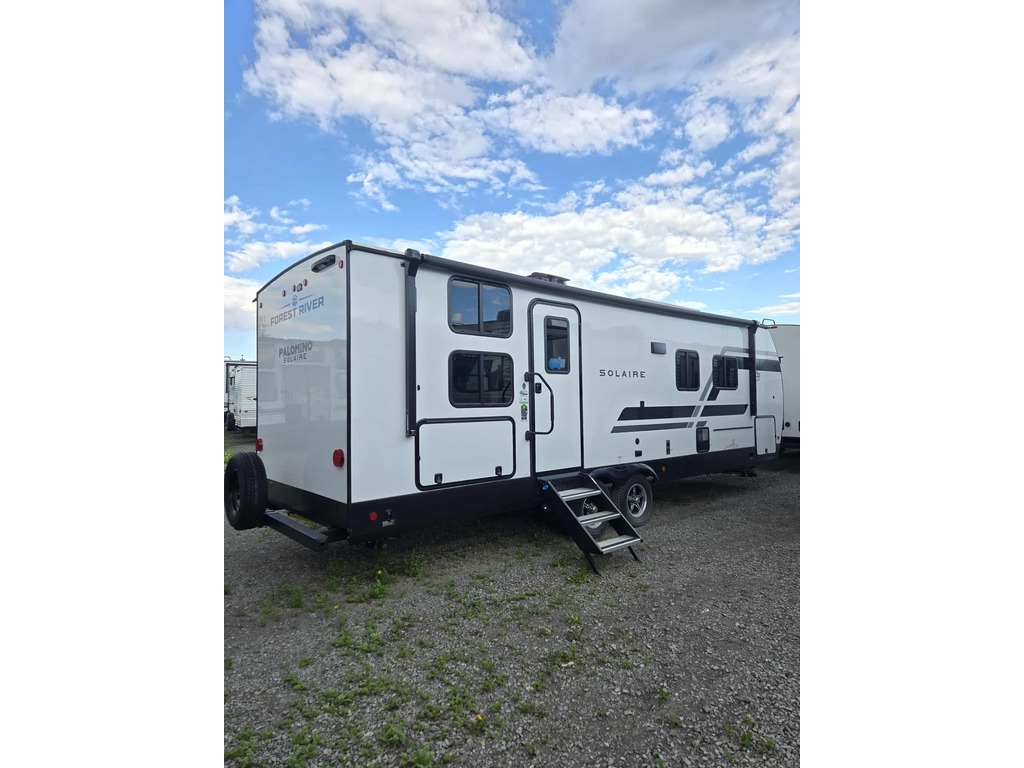 Roulotte Palomino Solaire 2430 BH neuve 2025 – Familiale, légère et moderne Découvrez la roulotte Palomino Solaire 2430 BH neuve 2025, une caravane idéale pour les familles à la recherche de confort, de style et de praticité pour leurs aventures en camping. Avec une longueur de 28,11 pieds et un poids léger de 5 495 lbs, cette roulotte de voyage offre une combinaison parfaite de robustesse et de facilité de remorquage, compatible avec la plupart des VUS et camionnettes. Caractéristiques principales : Capacité de couchage : Jusqu’à 8 personnes, parfaite pour les grandes familles. Disposition familiale : 2 lits superposés spacieux à l’arrière, lit queen de 60 pouces à l’avant avec grande fenestration pour une luminosité optimale. Espace de vie moderne : Grande banquette en U convertible, finition chic avec armoires bicolores blanches (nouveau design 2025). Cuisine extérieure complète : Équipée d’un BBQ, d’un réfrigérateur et d’un évier, idéale pour les repas en plein air. Confort haut de gamme : Air climatisé 13 500 BTU, auvent électrique de 21 pieds avec éclairage LED, réfrigérateur de 11 pieds cubes, télévision 24 pouces avec système DVD/Bluetooth/HDMI et haut-parleurs extérieurs. Technologie et durabilité : Essieux TORFLEX pour une suspension optimale, gel coat extérieur pour une finition durable et facile d’entretien, marche d’entrée MORRYDE, 4 jacks électriques et pôle avant électrique. Finition élégante : Appareils en acier inoxydable (évier, four, micro-ondes, réfrigérateur) pour une touche contemporaine. Avantages pour le camping : Conçue pour le confort quatre saisons, la Palomino Solaire 2430 BH est équipée pour des escapades toute l’année. Son isolation renforcée et son système de chauffage performant garantissent une expérience agréable, même par temps frais. Les panneaux solaires optionnels et le précâblage pour caméra de recul ajoutent une touche de modernité et d’autonomie pour les aventuriers hors réseau. Pourquoi choisir la Palomino Solaire 2430 BH ?Cette roulotte neuve allie design innovant, commodités haut de gamme et prix compétitif. Que vous soyez un campeur aguerri ou un novice, cette roulotte offre l’espace, la fonctionnalité et le style nécessaires pour des souvenirs inoubliables en famille. Disponible dès maintenant à [Nom de votre concessionnaire/site web], venez découvrir ce modèle à [Ville, Province] ou contactez-nous pour une soumission personnalisée.