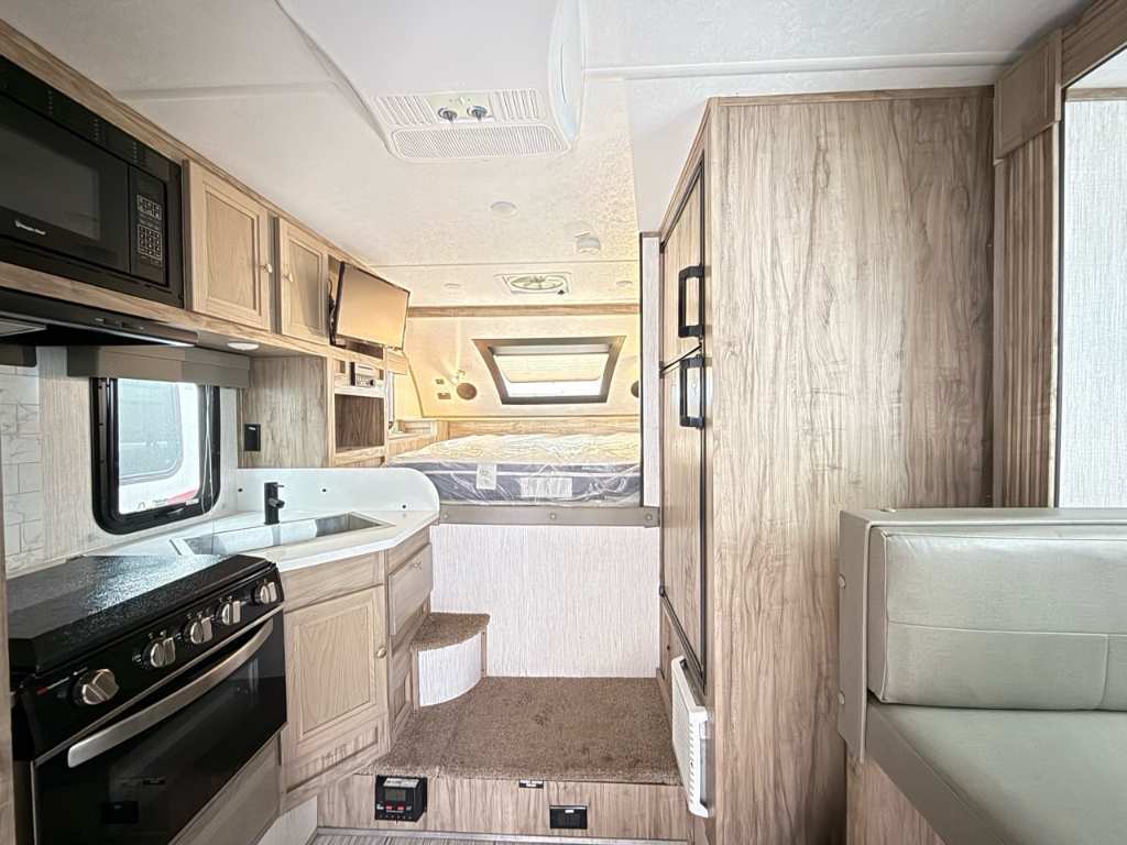 Palomino Backpack 2902 2022?? Palomino Backpack HS-2902 (2022) Type : Caravane portée (truck camper) avec slide-out Longueur totale : Environ 18 pieds (5,5 m) Hauteur intérieure : Environ 6 pieds 8 pouces (2,03 m) ?? Poids Poids à sec (Dry Weight) : 3260 lb ?? Camion requis Compatibilité : Conçue pour camion à boîte longue de 8 pieds (2,44 m) Camion recommandé : 1 tonne (350/3500), idéalement à roues doubles (dually) pour stabilité et charge utile Charge utile du camion nécessaire : Minimum 4 000 lb pour sécurité optimale ??? Équipements notables Slide-out pour la dînette Grand lit queen dans la capucine Cuisine avec évier double, réfrigérateur, four et micro-ondes Salle de bain humide (wet bath) *** Prendre note que les photos et les options décrites peuvent différées *** Toute l'équipe de Centre du VR est fière de vous présenter le plus vaste inventaire de véhicules récréatifs neufs et d'occasions à vendre au Québec. Vous y trouverez notamment les marques Columbus, Rockwood, Impression, Kodiak, Coleman, Cruiser RV, Flagstaff, E-Pro, Springdale, Sunset Trail, Cougar, Chaparral, Bontrager Outdoors, motorisés Axis, Hurricane, Outlaw, Coachmen Cross Trail, Prism, Echelon, Fleetwood, Four winds, Compass, Beyond, Nova et Pixel. Remorques N&N, Apogée et Armorteck sont aussi disponibles. En inventaire pour vous, la série de génératrices Ducar. Vous avez un coup de coeur ? Envoyez-nous une demande d'information. Financement sur place. N'oubliez pas également que rien ne vaut une visite du modèle qui vous intéresse pour vous aider à prendre une décision éclairée. Passez donc nous voir afin de jeter un coup d'oeil plus détaillé à nos caravanes et caravanes à sellettes neuves.
