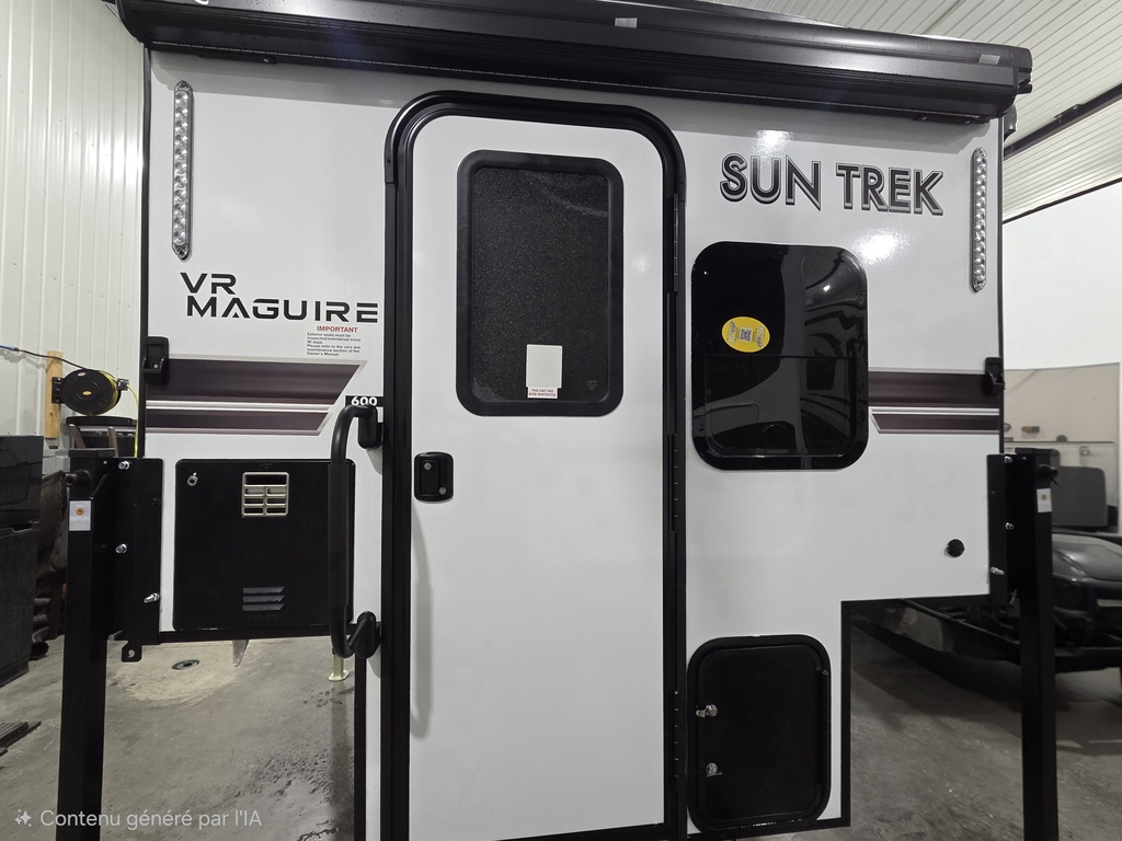 CARAVANE PORTÉE SUN TREK 600 2026, POIDS DE SEULEMENT 1366 LBS, LARGEUR DE PLANCHER DE 48 POUCES, 2 AUVENTS ÉLECTRIQUES, 2 PANNEAUX SOLAIRES, JACK MANUELS AU 4 COINS, AIR CLIMATISÉ, BEAUCOUP DE RANGEMENT POUR UN PETIT CAMPEUR, GRAND LIT DE 74'' X 82'', BANQUETTE LIT DE 72X35.5'' , STRUCTURE D'ALUMINIUM, AZDEL, ESPACES DE RANGEMENT RENDANT L'HABITACLE TRÈS FONCTIONNEL TOUT EN GARDANT LES COMMODITÉS SUIVANTES; CHAUFFAGE, FRIGO ET CONGÉLATEUR 12 VOLTS, SINK, MICRO-ONDES, SPEAKER BLUETOOTH PORTABLE, CAMPEUR VENDU INSPECTÉE ET GARANTIE. PASSEZ NOUS VOIR AU 174 ROUTE DU PRÉSIDENT KENNEDY, BEAUCEVILLE, G5X 1P4, À SEULEMENT 40 MINUTES DES PONTS DE QUÉBEC. LIVRAISON DISPONIBLE PARTOUT AU QUÉBEC! PROFITEZ DE NOTRE FINANCEMENT FACILE ET RAPIDE. POUR PLUS D'INFOS, SANS FRAIS 1-888-799-0874, BUREAU 418-774-5066, CELL OU MESSAGE TEXTE KEVIN 418-386-0025 AU PLAISIR DE VOUS SERVIR ET À BIENTÔT! TOUJOURS LES MEILLEURS PRIX DU MARCHÉ WWW.AUTOMAGUIRE.COM *** NOUVEAUTÉS CHAQUE SEMAINE ***