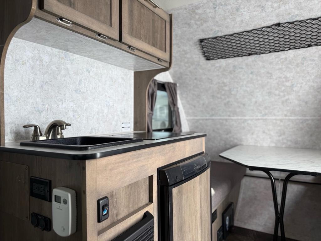 Prolite Mini 14P 2023 La Prolite Mini 2023 est une roulotte de camping mesurant 14' ultra-légère, conçue pour être facile à remorquer, même avec des véhicules compacts. Pesant environ 1 355 lb (615 kg), elle peut accueillir jusqu'à 4 personnes grâce à son divan-lit et sa dinette convertible. Elle est équipée d'une cuisine fonctionnelle avec un évier, un poêle deux ronds, un réfrigérateur compact et un micro-ondes, ainsi que d'un auvent extérieur et d'un grand espace de rangement. Caractéristiques notables Ultralégère : Son poids léger la rend très facile à remorquer par une variété de véhicules, y compris les voitures compactes. Jusqu'à 4 personnes : Elle offre un espace de couchage pour quatre personnes avec ses deux lits pliants ou son divan-lit convertible et une dinette. Cuisine complète : La cuisine comprend un évier, un poêle deux ronds, un réfrigérateur compact et un micro-ondes. Confort et commodités : Elle dispose d'un auvent extérieur, de coussins haute densité et d'un centre de chargement USB. Design pratique : Avec des armoires en érable véritable et des fenêtres en verre trempé, la Prolite Mini offre un espace fonctionnel et confortable. *** Prendre note que les photos et les options décrites peuvent différées *** Toute l'équipe de Centre du VR est fière de vous présenter le plus vaste inventaire de véhicules récréatifs neufs et d'occasions à vendre au Québec. Vous y trouverez notamment les marques Columbus, Rockwood, Kodiak, Coleman, Cruiser RV, Flagstaff, E-Pro, Springdale, Sunset Trail, Cougar, Chaparral, Bontrager Outdoors, motorisés Axis,Hurricane, Outlaw, Coachmen Cross Trail, Prism, Echelon,Fleetwood, Four winds, Beyon, Nova, Patriot et Embassy Dolphin. Remorques N&N, Apogée et Armorteck sont aussi disponibles. En inventaire pour vous, la série de génératrices Ducar. Vous avez un coup de coeur ? Envoyez-nous une demande d'information,financement sur place. N'oubliez pas également que rien ne vaut une visite du modèle qui vous intéresse pour vous aider à prendre une décision éclairée. Passez donc nous voir afin de jeter un coup d'oeil plus détaillé à nos caravanes et caravanes à sellettes neuves.
