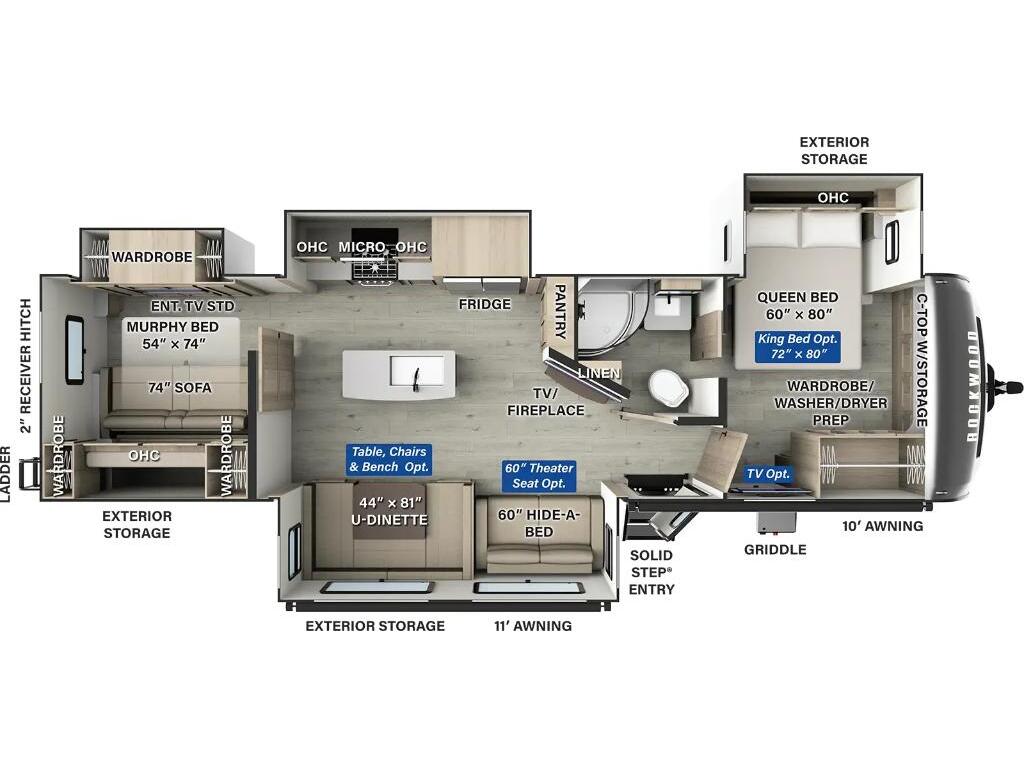 Rockwood Ultra Lite 8338DB 2025Rockwood Ultra Lite 8338DB 2025 Ce modèle spacieux de 36,83 pieds pèse 9 780 lb et offre tout le confort d’une maison sur roues. Avec une capacité de 54 gallons pour l’eau fraîche et un impressionnant total de 175 gallons pour les eaux usées, il est conçu pour les séjours prolongés sans souci. Caractéristiques principales : • 4 extensions pour maximiser l’espace intérieur • 2 auvents pour profiter pleinement de l’extérieur à l’ombre • Dinette en U conviviale pour les repas en famille • Îlot central avec évier, parfait pour cuisiner confortablement • Cuisine complète : cuisinière avec four, hotte, micro-ondes, et réfrigérateur pleine grandeur Espace de vie : • Télévision et foyer électrique pour des soirées chaleureuses • Causeuse confortable, idéale pour relaxer Espaces de couchage : • Chambre arrière multifonction : comprend un sofa et un lit escamotable, avec sa propre télévision et de nombreux espaces de rangement • Chambre principale avec grand lit et garde-robe Salle de bain complète : • Douche en coin, vanité avec rangement et toilette *** Prendre note que les photos et les options décrites peuvent différées *** Toute l'équipe de Centre du VR est fière de vous présenter le plus vaste inventaire de véhicules récréatifs neufs et d'occasions à vendre au Québec. Vous y trouverez notamment les marques Columbus, Rockwood, Impression, Kodiak, Coleman, Cruiser RV, Flagstaff, E-Pro, Springdale, Sunset Trail, Cougar, Chaparral, Bontrager Outdoors, motorisés Axis, Hurricane, Outlaw, Coachmen Cross Trail, Prism, Echelon, Fleetwood, Four winds, Compass, Beyond, Nova et Pixel. Remorques N&N, Apogée et Armorteck sont aussi disponibles. En inventaire pour vous, la série de génératrices Ducar. Vous avez un coup de coeur ? Envoyez-nous une demande d'information. Financement sur place. N'oubliez pas également que rien ne vaut une visite du modèle qui vous intéresse pour vous aider à prendre une décision éclairée. Passez donc nous voir afin de jeter un coup d'oeil plus détaillé à nos caravanes et caravanes à sellettes neuves.