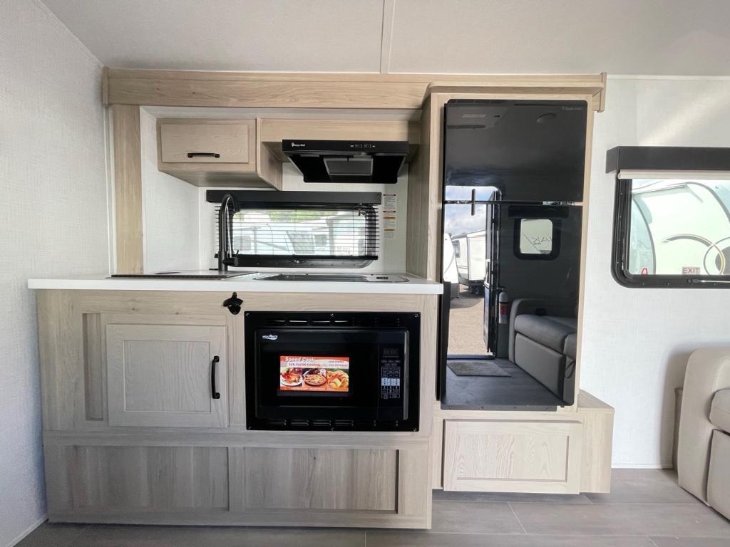 Rockwood Geopro 19FDS 2024 Rockwood Geo Pro 19FDS 2022 Cette unité mesure 20' et pèse 3 322 lbs. Possède panneau solaire de 200watt et convertisseur de 1800watt. Elle peut accueillir jusqu'à 3 personnes au coucher, car elle possède un lit murphy et un sofa-lit. L'aire commune possède une cuisinière à 3 brûleurs, un frigo, micro-onde, une dinette ainsi qu'un téléviseur. La salle de bain possède un douche, une toilette et une vanité. Extérieur en fibre de verre avec auvent rétractable ainsi qu'un extension et une douche extérieur. Centre du VR : Votre expert en véhicules récréatifs au Québec Découvrez le plus vaste inventaire de VR neufs et d'occasion au meilleur prix. Que vous cherchiez une roulotte, une caravane à sellette (fifth wheel), une caravane-portée, un motorisé ou une remorque, notre équipe vous propose les plus grandes marques : Roulottes et Fifth Wheels : Rockwood, Flagstaff, Cougar, Springdale, Sunset Trail, Chaparral, Columbus, Impression, Kodiak, Coleman, E-Pro, Cruiser RV. Motorisés (Classe A, B, C) : Axis, Hurricane, Fleetwood, Four Winds, Coachmen Cross Trail, Prism, Echelon, Outlaw, Beyond, Nova. Remorques et Équipements : NN, Apogée, Armorteck et génératrices Ducar ou Cummins. Bien plus que de la vente : Un service complet Département de pièces et boutique : Un inventaire massif de pièces de remplacement et d'accessoires de camping pour améliorer votre confort. Service et réparation : Un centre de service spécialisé pour l'entretien et la réparation de vos unités, assuré par des techniciens experts. Financement : Profitez de nos solutions de financement avantageuses directement sur place. Un modèle vous intéresse ou vous avez besoin d'un entretien ? Contactez-nous pour une demande d'information ou passez nous voir en succursale pour une visite ! Note : Les photos et options peuvent différer de la réalité.