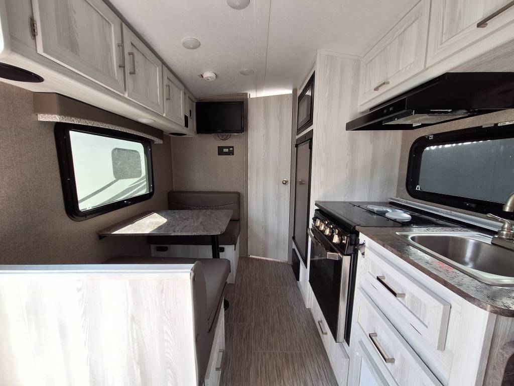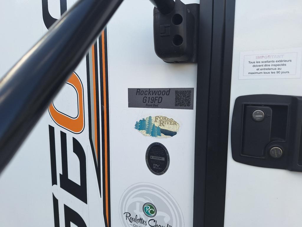 Rockwood Geopro 19FD 2019 Roulotte – Rockwood 19FD Geopro 2019 - La Rockwood Geo Pro G19FD 2019 est une petite roulotte pensée pour ceux qui veulent voyager léger, sans sacrifier le confort. Dimensions & Capacités : • Longueur totale : 20 pieds • Poids à sec : 2 829 lbs • Réservoir d’eau douce : 37 gal • Réservoirs d’eaux usées : 60 gal • Couchages : Jusqu’à 3 couchages 5 caractéristiques principales : • Autonomie en eau et gaz bien pensée - Elle possède un réservoir d’eau douce de 37?gal (140?L), ainsi que deux réservoirs gris et noir de 30?gal (114?L) chacun, et deux bonbonnes de propane (40?lb) — parfaits pour quelques jours en autonomie. • Compacte mais optimisée – Longue de 20 pieds pour seulement 7,33 pieds de largeur, avec une hauteur intérieure de 6,5 pieds, elle offre un espace intérieur confortable tout en restant facile à manier. • Tout le confort dans un petit espace – Malgré sa taille, l’espace est bien pensé : on y retrouve un lit escamotable (Murphy bed), une table pour manger qui peut aussi servir de lit, une cuisine pratique et une salle de bain complète à l’arrière. • Bien climatisée, bien chauffée – Peu importe la saison, vous serez à l’aise. Il y a un système de climatisation pour l’été et un chauffage efficace pour les nuits plus fraîches. • Facile à tirer, facile à vivre – elle est légère et compacte, donc parfaite si vous n’avez pas un gros véhicule. Vous pouvez partir à l’aventure sans stress. Facile à utiliser, bien aménagée et prête pour l’aventure, elle est parfaite pour les escapades à deux — que ce soit pour un week-end ou un long voyage. Centre du VR : Votre expert en véhicules récréatifs au Québec Découvrez le plus vaste inventaire de VR neufs et d'occasion au meilleur prix. Que vous cherchiez une roulotte, une caravane à sellette (fifth wheel), une caravane-portée, un motorisé ou une remorque, notre équipe vous propose les plus grandes marques : Roulottes et Fifth Wheels : Rockwood, Flagstaff, Cougar, Springdale, Sunset Trail, Chaparral, Columbus, Impression, Kodiak, Coleman, E-Pro, Cruiser RV. Motorisés (Classe A, B, C) : Axis, Hurricane, Fleetwood, Four Winds, Coachmen Cross Trail, Prism, Echelon, Outlaw, Beyond, Nova. Remorques et Équipements : NN, Apogée, Armorteck et génératrices Ducar ou Cummins. Bien plus que de la vente : Un service complet Département de pièces et boutique : Un inventaire massif de pièces de remplacement et d'accessoires de camping pour améliorer votre confort. Service et réparation : Un centre de service spécialisé pour l'entretien et la réparation de vos unités, assuré par des techniciens experts. Financement : Profitez de nos solutions de financement avantageuses directement sur place. Un modèle vous intéresse ou vous avez besoin d'un entretien ? Contactez-nous pour une demande d'information ou passez nous voir en succursale pour une visite ! Note : Les photos et options peuvent différer de la réalité.