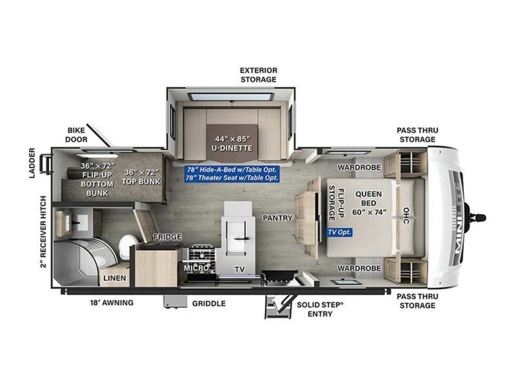 Rockwood Mini Lite 2520BH 2026 Dimensions & Poids : • Longueur : 26,00 • Poids à sec : 5 594lbs Capacités : • Réservoir d’eau fraîche : 54 gal • Réservoirs d’eaux usées (grises et noires) : 58 gal au total Peux accueillir 6 personnes Centre du VR : Votre expert en véhicules récréatifs au Québec Découvrez le plus vaste inventaire de VR neufs et d'occasion au meilleur prix. Que vous cherchiez une roulotte, une caravane à sellette (fifth wheel), une caravane-portée, un motorisé ou une remorque, notre équipe vous propose les plus grandes marques : Roulottes et Fifth Wheels : Rockwood, Flagstaff, Cougar, Springdale, Sunset Trail, Chaparral, Columbus, Impression, Kodiak, Coleman, E-Pro, Cruiser RV. Motorisés (Classe A, B, C) : Axis, Hurricane, Fleetwood, Four Winds, Coachmen Cross Trail, Prism, Echelon, Outlaw, Beyond, Nova. Remorques et Équipements : NN, Apogée, Armorteck et génératrices Ducar ou Cummins. Bien plus que de la vente : Un service complet Département de pièces et boutique : Un inventaire massif de pièces de remplacement et d'accessoires de camping pour améliorer votre confort. Service et réparation : Un centre de service spécialisé pour l'entretien et la réparation de vos unités, assuré par des techniciens experts. Financement : Profitez de nos solutions de financement avantageuses directement sur place. Un modèle vous intéresse ou vous avez besoin d'un entretien ? Contactez-nous pour une demande d'information ou passez nous voir en succursale pour une visite ! Note : Les photos et options peuvent différer de la réalité.
