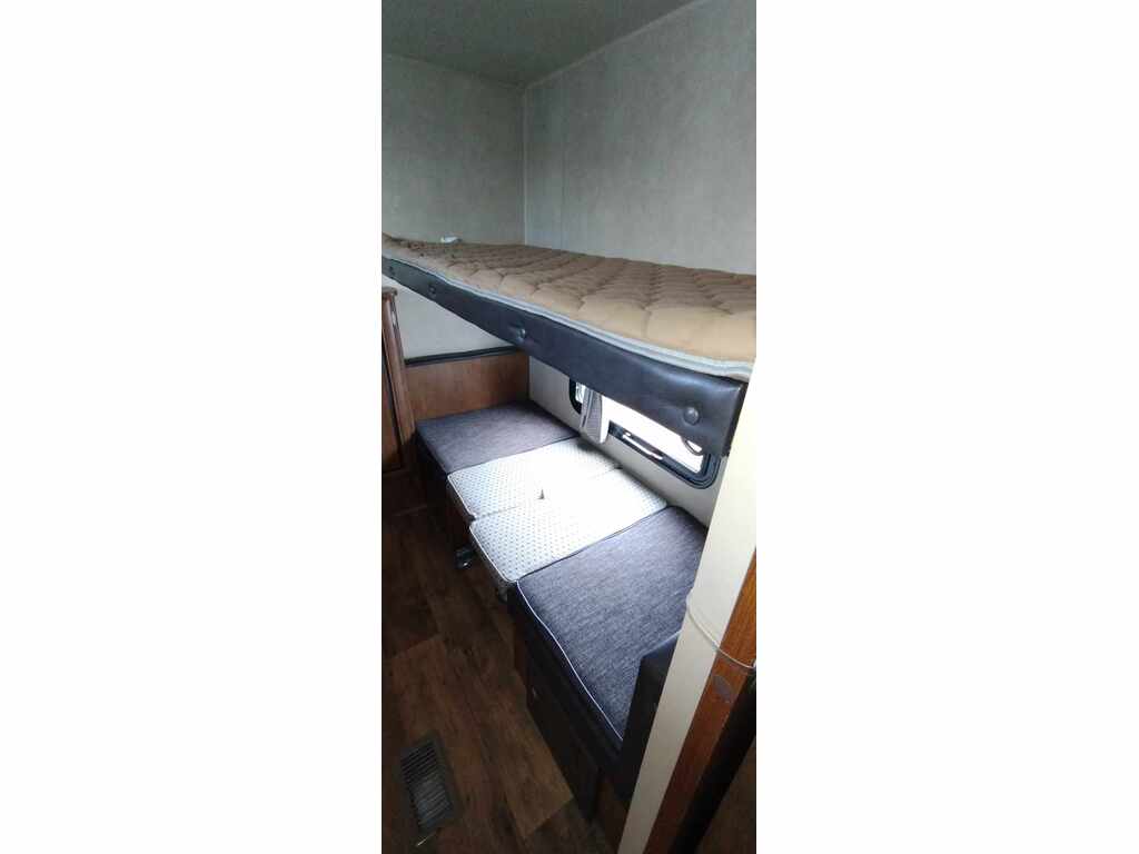 Forest River Salem 30KQBSS 2016 : Votre roulotte familiale pour des aventures inoubliables ! Découvrez cette roulotte de voyage spacieuse, idéale pour les grandes familles ou groupes cherchant confort et commodité. Avec une longueur de 33 pieds 6 pouces et un poids à sec d’environ 6944 lb, la Salem 30KQBSS 2016 est équipée de trois extensions (slideouts) pour un espace de vie généreux. Elle accueille jusqu’à 9 personnes, avec un lit queen à l’avant, des lits superposés à l’arrière, une dinette en U convertible et un sofa-lit.La cuisine moderne inclut un réfrigérateur 6 pi³, une cuisinière 3 brûleurs avec four, un micro-ondes et un évier double. La salle de bain complète offre une douche, une toilette et un lavabo. Profitez d’une climatisation 13 500 BTU, d’un chauffe-eau de 6 gallons, d’un auvent électrique de 16 pieds et d’un compartiment de rangement pass-through. Les commodités incluent des haut-parleurs extérieurs, un système stéréo AM/FM/CD, une construction robuste avec châssis en acier et des réservoirs (40 gal. eau fraîche, 32 gal. eaux grises, 32 gal. eaux noires) pour une autonomie prolongée.Parfaite pour le camping familial, les escapades au bord du lac ou les séjours en nature, la Forest River Salem 30KQBSS 2016 allie espace, durabilité et prix abordable