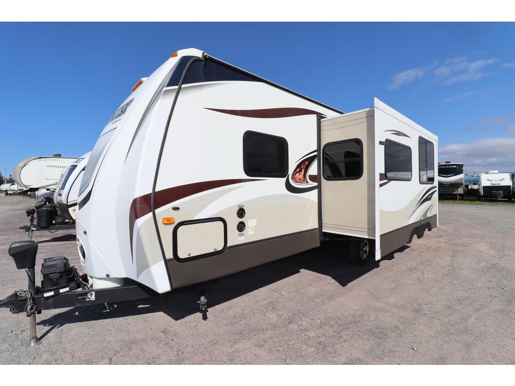 SPRINTER 266RBS 2015 Longueur 29,67 pi (356 po) Largeur 8,33 pi (100 po) Hauteur 11 pi (132 po) Hauteur intérieure 6,67 pi (80 po) Poids Poids sec 6 501 livres Capacité de charge utile 3 054 livres PNBV 9 555 livres Poids d'attelage 755 livres Réservoirs de rétention Nombre de réservoirs d'eau douce 1 Capacité totale du réservoir d'eau douce 81,0 gal. Nombre de réservoirs de rétention d'eaux grises 1 Capacité totale du réservoir d'eaux grises 83,0 gal. Nombre de réservoirs de rétention des eaux noires 1 Capacité totale du réservoir d'eaux noires 40,0 gal. Réservoir(s) de propane Nombre de réservoirs de propane 2 Capacité totale du réservoir de propane 14,2 gal. Capacité totale du réservoir de propane 60 livres. Auvent électrique. Configuration de la table de cuisine Banquettes. Mode d'alimentation du réfrigérateur Électrique / Propane. Peux coucher 6 personnes. *** Prendre note que les photos et les options décrites peuvent différées *** Toute l'équipe de Centre du VR est fière de vous présenter le plus vaste inventaire de véhicules récréatifs neufs et d'occasions à vendre au Québec. Vous y trouverez notamment les marques Columbus, Rockwood, Kodiak, Coleman, Cruiser RV, Flagstaff, E-Pro, Springdale, Sunset Trail, Cougar, Chaparral, Bontrager Outdoors, motorisés Axis,Hurricane, Outlaw, Coachmen Cross Trail, Prism, Echelon,Fleetwood, Four winds, Beyon, Nova, Patriot et Embassy Dolphin. Remorques N&N, Apogée et Armorteck sont aussi disponibles. En inventaire pour vous, la série de génératrices Ducar. Vous avez un coup de coeur ? Envoyez-nous une demande d'information,financement sur place. N'oubliez pas également que rien ne vaut une visite du modèle qui vous intéresse pour vous aider à prendre une décision éclairée. Passez donc nous voir afin de jeter un coup d'oeil plus détaillé à nos caravanes et caravanes à sellettes neuves.