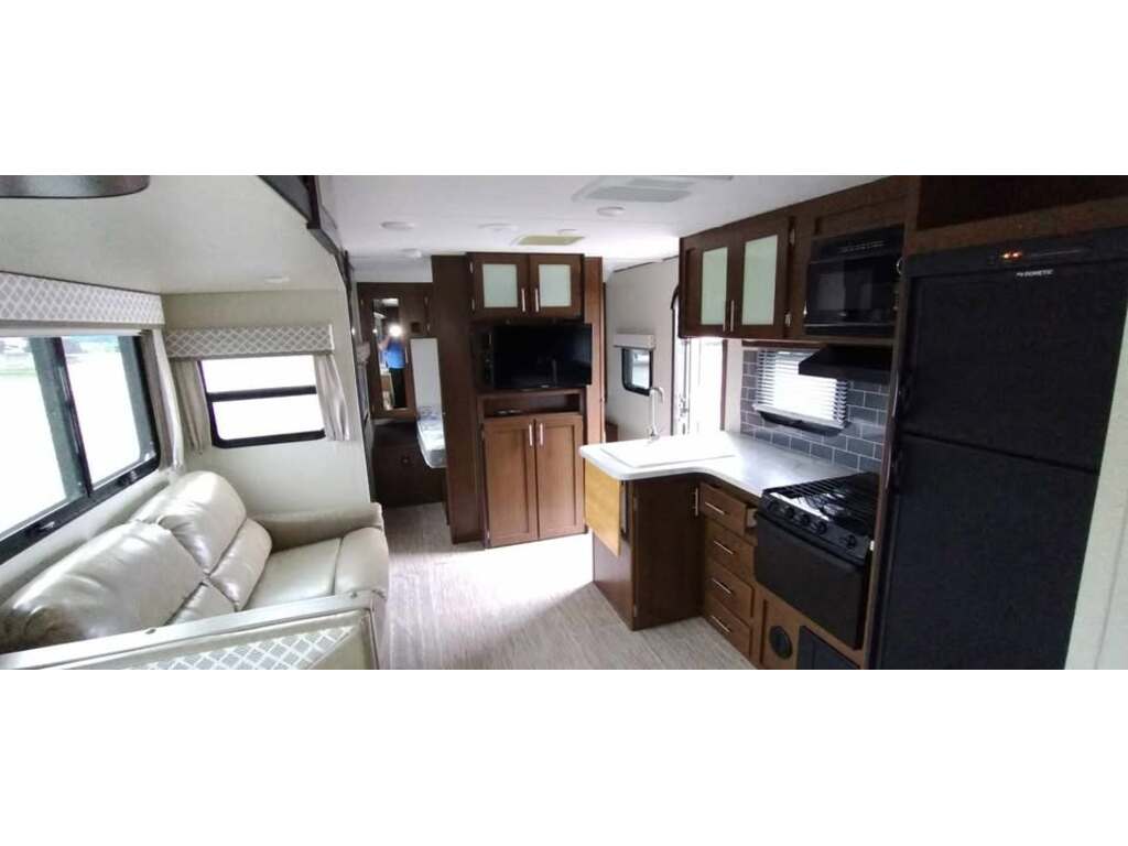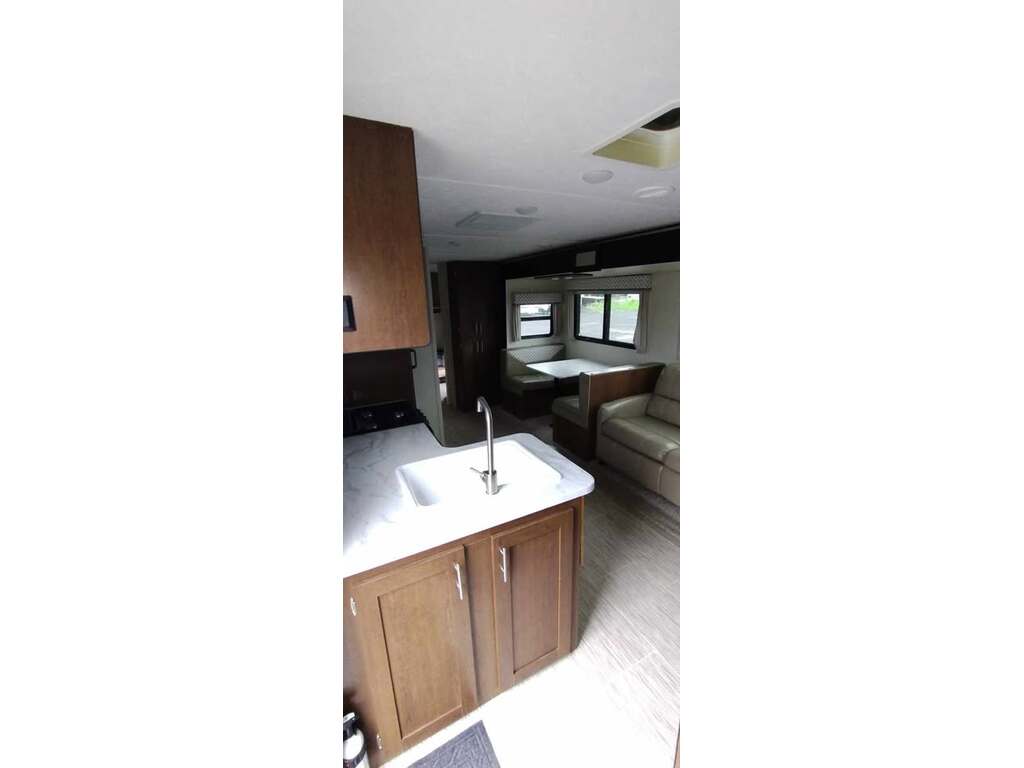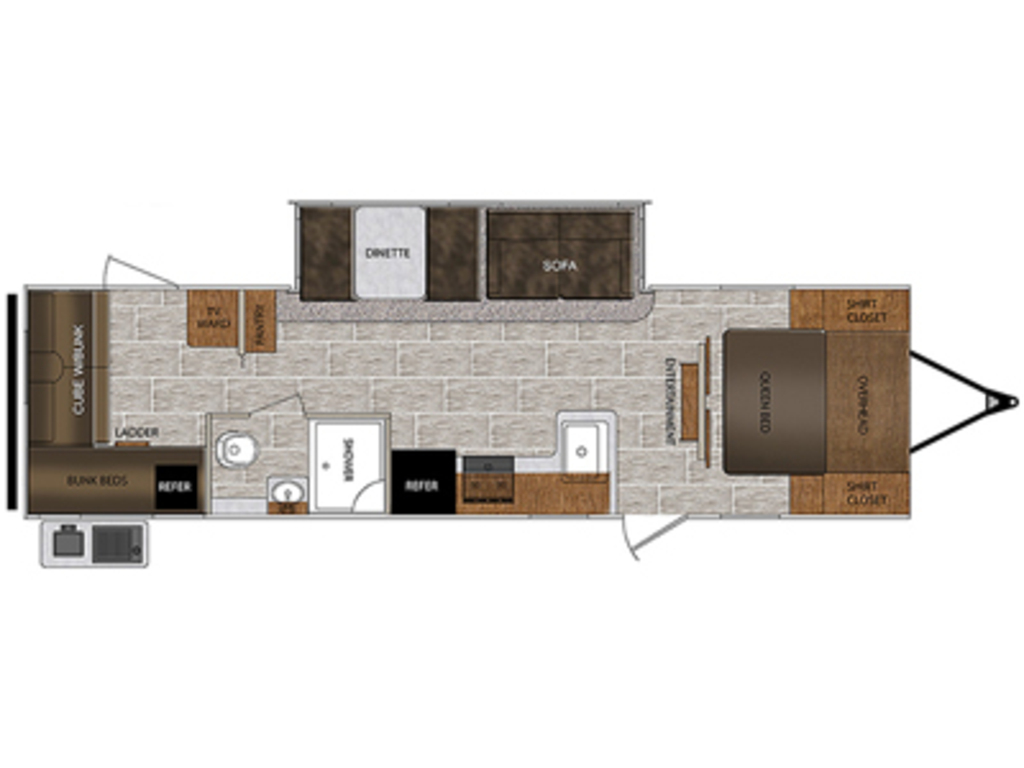 Tracer 291BR 2018 : Votre roulotte familiale pour des escapades mémorables ! Découvrez cette roulotte de voyage spacieuse, parfaite pour les familles ou groupes cherchant confort et fonctionnalité. Avec une longueur de 34 pieds 1 pouce et un poids à sec d’environ 7088 lb, la Tracer 291BR 2018 offre un agencement bunkhouse avec une extension (slideout). Elle accueille jusqu’à 8 personnes, avec des lits superposés à l’arrière, un lit queen à l’avant, une dinette convertible et un sofa-lit. La cuisine moderne inclut un réfrigérateur 8 pi³, une cuisinière 3 brûleurs avec four, un micro-ondes et un évier double. La salle de bain complète comprend une douche, une toilette et un lavabo. Profitez d’une climatisation 15 000 BTU, d’un chauffe-eau de 6 gallons, d’un auvent électrique de 18 pieds et d’un grand rangement pass-through. Les commodités incluent des haut-parleurs extérieurs Bluetooth, une télévision LED, une construction en aluminium robuste et des réservoirs (48 gal. eau fraîche, 34 gal. eaux grises, 34 gal. eaux noires) pour une autonomie prolongée. Idéale pour le camping familial, les séjours en nature ou les aventures au bord du lac, la Prime Time Tracer 291BR 2018 combine espace, qualité et prix abordable