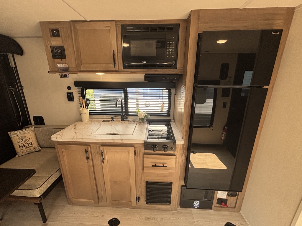 COMMANDEZ-MOI!!! Wolf Pup 18RJB 2026. Idéale pour transporter facilement votre moto, votre VTT etc. Elle pèse 3800 lbs. Super bien équipée avec une cuisine munie d'un évier, grand réfrigérateur et cuisinière. La table se transforme en lit supplémentaire, ce qui permet d'accueillir environ 3 personnes à coucher dans la roulotte. La salle de bain possède un bain douche. La chambre est situé à l'avant de la roulotte avec un lit queen ainsi qu'un petit lit superposé. La rampe d'accès arrière se transforme en patio. Porte arrière pleine grandeur. Absolument à voir. Financement facile sur place.