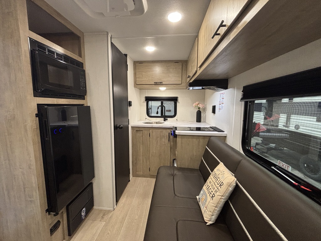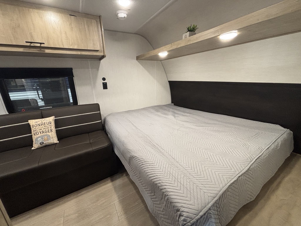 WOLF PUP 14RKLP 2026 ROULOTTE LÉGÈRE POUR COUPLE AVEC UN POIDS DE 2600 LIVRES SEULEMENT INTÉRIEUR: - Cuisine bien équipée avec évier, 2 ronds de poêle, réfrigérateur et micro-ondes - Sofa qui se transforme en lit - Beaucoup de rangement - Grand lit avant avec rangement dessous - Salle de bain avec bain douche EXTÉREIUR: - Auvent électrique - Coffre de rangement photos à titre indicatif