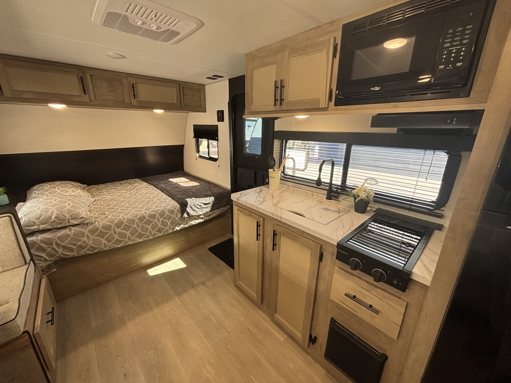 WOLF PUP 17JW 2026 Roulotte parfaite pour une famille, elle pèse 4300 lbs et peut coucher jusqu'à 7-8 personnes! INTÉRIEUR: - Cuisine entièrement équipée avec grand réfrigérateur - Grande banquette en U transformable en lit - Grand lit à l'avant - Lits superposés doubles à l'arrière - Salle de bain complète - Rangement sous le lit EXTÉRIEUR: - Auvent électrique avec LED - Petit réfrigérateur électrique - Porte extérieure donnant accès sous les lits superposés - Marches solides - Coffre de rangement Super modèle familial à voir absolument!!!