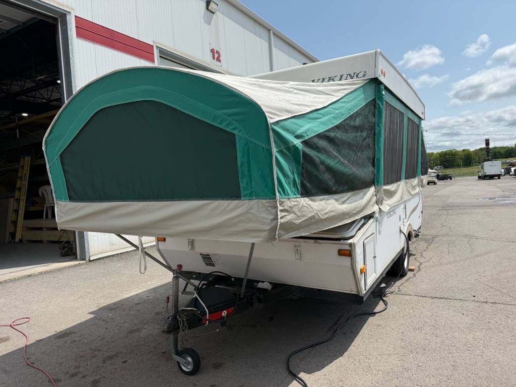 Coachmen Viking Epic 2308S 2007Tente-roulotte - Coachmen 2308S Viking Epic 2007 - Vous rêvez de partir à l’aventure en famille ou entre amis, sans sacrifier le confort?? La tente-roulotte Viking Epic 2308S (2007) est une option idéale, pratique et abordable pour profiter pleinement du plein air. Dimensions & Capacités : • Longueur totale : 23.5 pieds • Poids à sec : 2 054 lbs • Couchages : Jusqu’à 6 personnes • Évier de cuisine 5 caractéristiques principales : • Tentes extensibles aux deux extrémités – Le VR possède deux grandes extensions de chaque côté, qui se déplient pour offrir des espaces de couchage confortables. Cela permet d’accueillir facilement plusieurs personnes pour dormir. • Équipements extérieurs pratiques – À l’extérieur, on remarque une petite marche pour entrer, une lumière près de la porte, des prises électriques, et des espaces de rangement. Ces détails rendent le camping plus simple et agréable. • Climatisation et ventilation – On voit qu’il y a un climatiseur installé sur le toit, ainsi qu’un système de ventilation. Cela aide à garder l’intérieur frais et confortable même lorsqu’il fait chaud. • Format compact et pratique - Cette tente-roulotte se replie facilement pour le transport, mais une fois déployée, elle offre beaucoup d’espace à l’intérieur. • Espace pour dormir jusqu’à 6 personnes - Idéale pour les familles ou les couples qui aiment voyager avec un peu plus de confort. Facile à utiliser, bien pensée et parfaite pour s’évader, cette tente-roulotte a tout pour rendre vos escapades simples, agréables et mémorables. *** Prendre note que les photos et les options décrites peuvent différées *** Toute l'équipe de Centre du VR est fière de vous présenter le plus vaste inventaire de véhicules récréatifs neufs et d'occasions à vendre au Québec. Vous y trouverez notamment les marques Columbus, Rockwood, Impression, Kodiak, Coleman, Cruiser RV, Flagstaff, E-Pro, Springdale, Sunset Trail, Cougar, Chaparral, Bontrager Outdoors, motorisés Axis, Hurricane, Outlaw, Coachmen Cross Trail, Prism, Echelon, Fleetwood, Four winds, Compass, Beyond, Nova et Pixel. Remorques N&N, Apogée et Armorteck sont aussi disponibles. En inventaire pour vous, la série de génératrices Ducar. Vous avez un coup de coeur ? Envoyez-nous une demande d'information. Financement sur place. N'oubliez pas également que rien ne vaut une visite du modèle qui vous intéresse pour vous aider à prendre une décision éclairée. Passez donc nous voir afin de jeter un coup d'oeil plus détaillé à nos caravanes et caravanes à sellettes neuves.