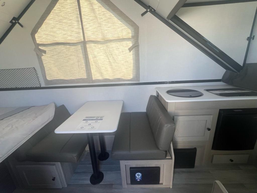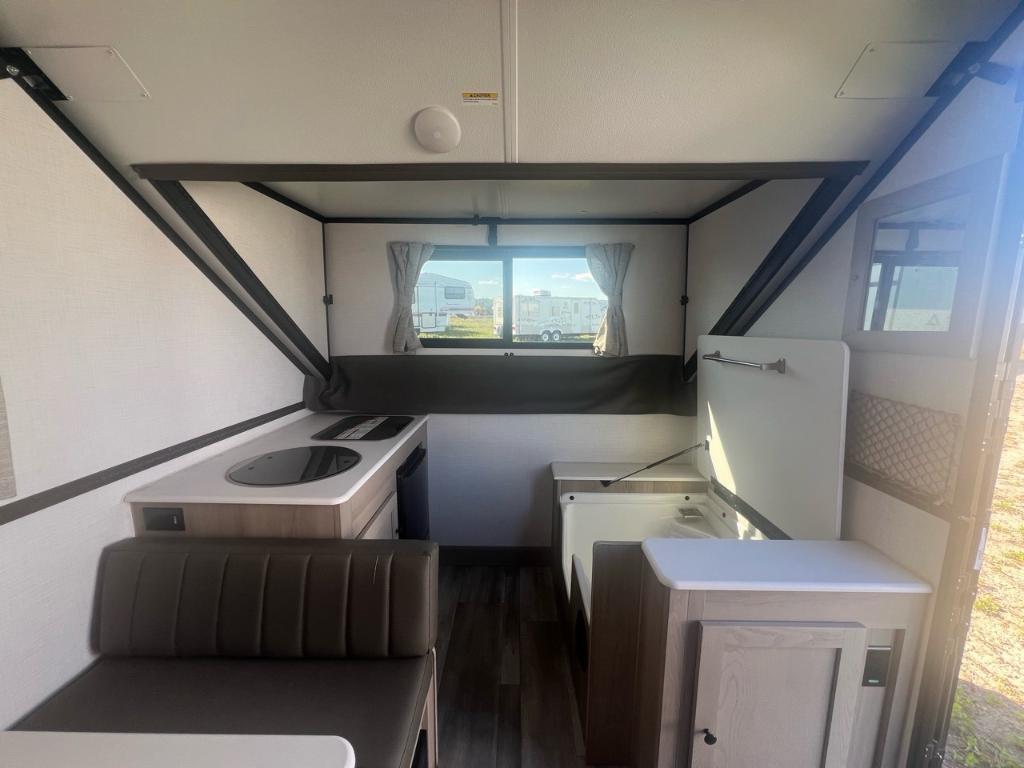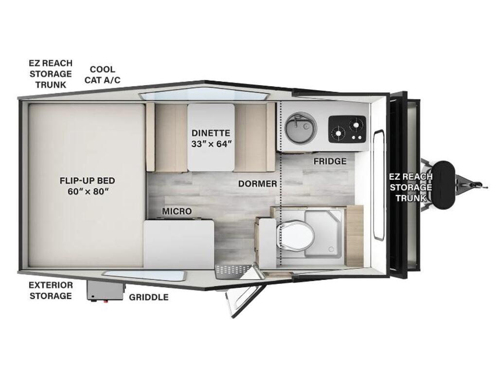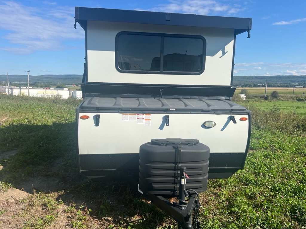 Options : Convertisseur de courant continu, Réservoir de propane, Vérin stabilisateur, Douche extérieure, Lit queen-size, Prise électrique, Détecteur LPG/CO2, Cuisinière, Coffre rangement avant, Chauffe-eau