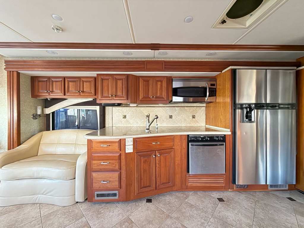 American Coach REVOLUTION 40LE DIESEL 2008REVOLUTION 40LE – 2008 – Diesel Motorisation • Moteur diesel Cummins à poussoirs, 6 cylindres en ligne (I6) • Puissance : 400 chevaux à 2 200 tr/min • Transmission automatique Allison à 6 vitesses Châssis • Marque : Spartan • Modèle : Série XC Dimensions et capacités • Longueur : 39,96 pieds • Réservoir d’eau douce : capacité de 95 gallons • Réservoirs d’eaux usées : capacité totale de 100 gallons • Capacité d’accueil : jusqu’à 8 couchages Aménagements intérieurs Cuisine • Cuisine entièrement équipée avec : o Réfrigérateur double porte o Cuisinière o Four micro-ondes o Évier double en acier inoxydable o Plans de travail spacieux o Nombreux rangements haut et bas Salon • Salon spacieux et confortable comprenant : o Canapé convertible o Fauteuils supplémentaires o Table dinette avec chaises o Éclairage d’ambiance o Téléviseur à écran plat • Chambre principale avec : o Lit queen-size o Rangements intégrés (placards, tiroirs, penderie) o Téléviseur supplémentaire o Espace de circulation confortable Salle de bain • Salle de bain complète avec : o Douche spacieuse avec parois vitrées o Lavabo avec meuble de rangement *** Prendre note que les photos et les options décrites peuvent différées *** Toute l'équipe de Centre du VR est fière de vous présenter le plus vaste inventaire de véhicules récréatifs neufs et d'occasions à vendre au Québec. Vous y trouverez notamment les marques Columbus, Rockwood, Impression, Kodiak, Coleman, Cruiser RV, Flagstaff, E-Pro, Springdale, Sunset Trail, Cougar, Chaparral, Bontrager Outdoors, motorisés Axis, Hurricane, Outlaw, Coachmen Cross Trail, Prism, Echelon, Fleetwood, Four winds, Compass, Beyond, Nova et Pixel. Remorques N&N, Apogée et Armorteck sont aussi disponibles. En inventaire pour vous, la série de génératrices Ducar. Vous avez un coup de coeur ? Envoyez-nous une demande d'information. Financement sur place. N'oubliez pas également que rien ne vaut une visite du modèle qui vous intéresse pour vous aider à prendre une décision éclairée. Passez donc nous voir afin de jeter un coup d'oeil plus détaillé à nos caravanes et caravanes à sellettes neuves.