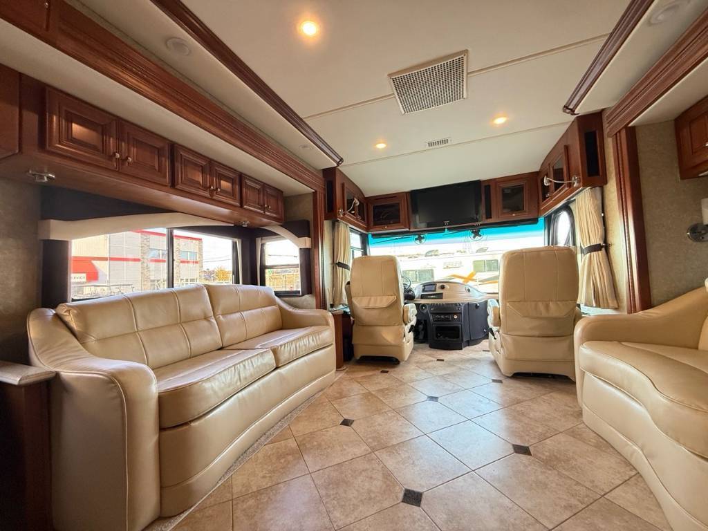American Coach REVOLUTION 40LE DIESEL 2008REVOLUTION 40LE – 2008 – Diesel Motorisation • Moteur diesel Cummins à poussoirs, 6 cylindres en ligne (I6) • Puissance : 400 chevaux à 2 200 tr/min • Transmission automatique Allison à 6 vitesses Châssis • Marque : Spartan • Modèle : Série XC Dimensions et capacités • Longueur : 39,96 pieds • Réservoir d’eau douce : capacité de 95 gallons • Réservoirs d’eaux usées : capacité totale de 100 gallons • Capacité d’accueil : jusqu’à 8 couchages Aménagements intérieurs Cuisine • Cuisine entièrement équipée avec : o Réfrigérateur double porte o Cuisinière o Four micro-ondes o Évier double en acier inoxydable o Plans de travail spacieux o Nombreux rangements haut et bas Salon • Salon spacieux et confortable comprenant : o Canapé convertible o Fauteuils supplémentaires o Table dinette avec chaises o Éclairage d’ambiance o Téléviseur à écran plat • Chambre principale avec : o Lit queen-size o Rangements intégrés (placards, tiroirs, penderie) o Téléviseur supplémentaire o Espace de circulation confortable Salle de bain • Salle de bain complète avec : o Douche spacieuse avec parois vitrées o Lavabo avec meuble de rangement *** Prendre note que les photos et les options décrites peuvent différées *** Toute l'équipe de Centre du VR est fière de vous présenter le plus vaste inventaire de véhicules récréatifs neufs et d'occasions à vendre au Québec. Vous y trouverez notamment les marques Columbus, Rockwood, Impression, Kodiak, Coleman, Cruiser RV, Flagstaff, E-Pro, Springdale, Sunset Trail, Cougar, Chaparral, Bontrager Outdoors, motorisés Axis, Hurricane, Outlaw, Coachmen Cross Trail, Prism, Echelon, Fleetwood, Four winds, Compass, Beyond, Nova et Pixel. Remorques N&N, Apogée et Armorteck sont aussi disponibles. En inventaire pour vous, la série de génératrices Ducar. Vous avez un coup de coeur ? Envoyez-nous une demande d'information. Financement sur place. N'oubliez pas également que rien ne vaut une visite du modèle qui vous intéresse pour vous aider à prendre une décision éclairée. Passez donc nous voir afin de jeter un coup d'oeil plus détaillé à nos caravanes et caravanes à sellettes neuves.