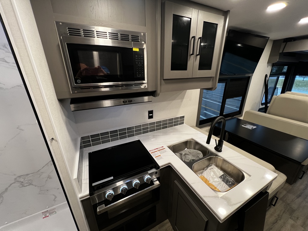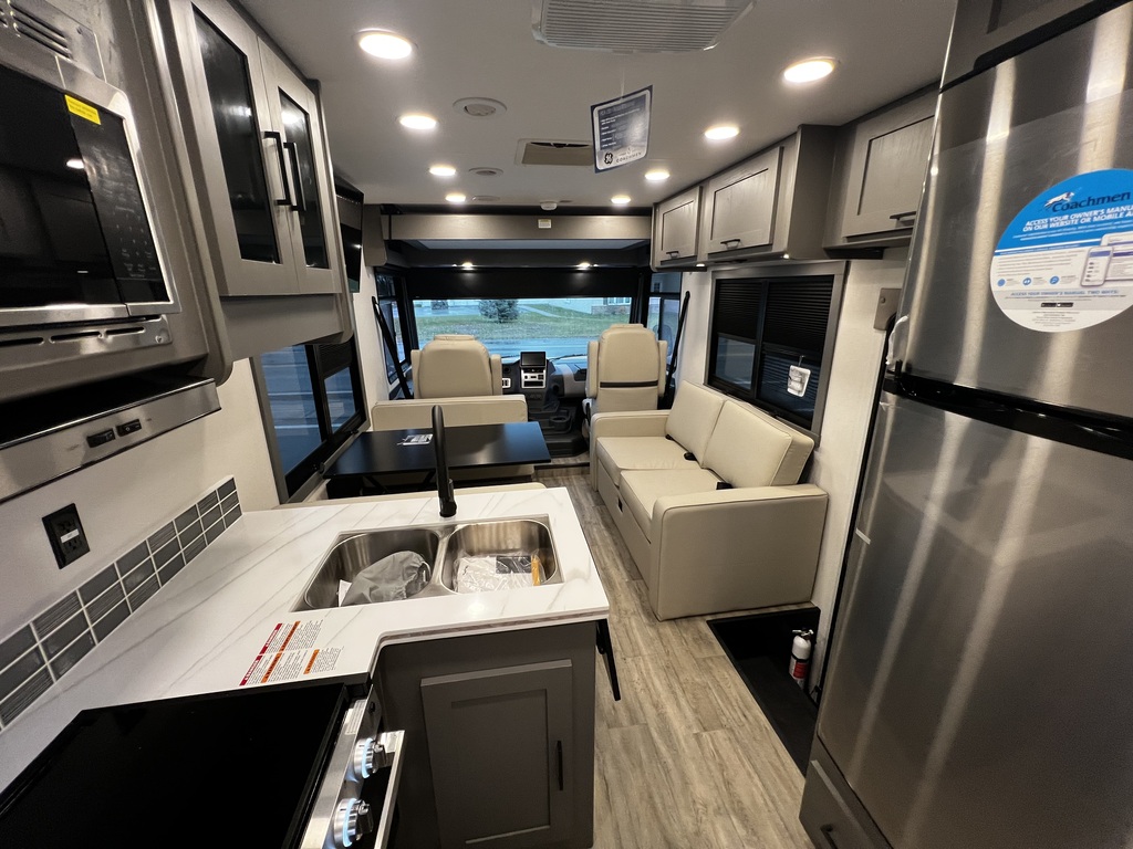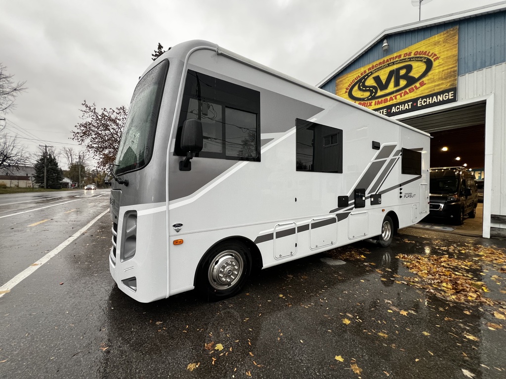 Le Coachmen Pursuit 27XPS est un motorisé de Classe A à essence conçu pour l'explorateur qui désire le luxe et la visibilité d'un Classe A dans un format plus compact et maniable. Ce VR se distingue par sa construction supérieure intégrant des panneaux composites Azdel dans ses parois latérales, assurant une résistance accrue à l'humidité, à la pourriture et à la délamination, tout en offrant une meilleure isolation thermique et acoustique. Construit sur le châssis fiable Ford F53 (avec un moteur V8 puissant), le 27XPS offre une capacité de couchage généreuse (jusqu'à 8 personnes) grâce notamment à son lit escamotable au-dessus du poste de conduite. À l'intérieur, vous trouverez toutes les commodités nécessaires, incluant une cuisine complète, une salle de bain privée, une chambre fermée et une génératrice de 4,0 kW, faisant du 27XPS un choix durable, confortable et autonome pour vos aventures en famille. Prêt à prendre la route aujourd'hui!