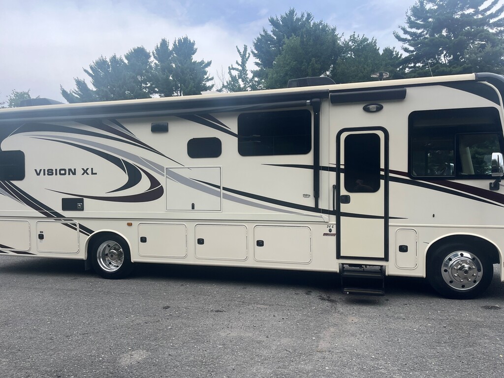 ENTEGRA VISION XL 34G 2020 moteur 6.8 ford chassis 22000 lbs pneus 22.5 génératrice onan 5500 beaucoup de rangement exterieur ,interiur deluxe avec divant et causeuse ,table avec banquette ,grand frigidaire poele micro onde convection ,beau comptoir grande chambre arrière TRES BEAU MOTORISÉ A VOIR