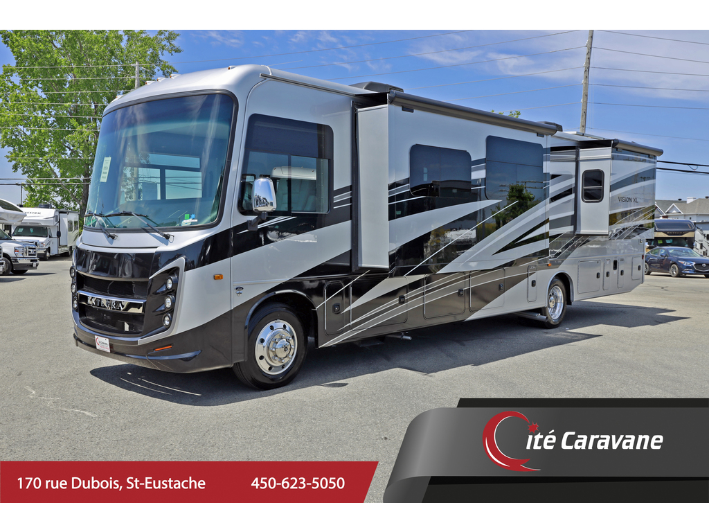 Entegra Coach Vision XL 36A Bunk beds + 2 salle de bain + Peinture complète King L'Entergra Coach est construit dans un esprit résidentiel et vous attend pour votre prochaine aventure. Ce magnifique VR dispose d'un lit king-size et d'un aménagement confortable et spacieux. Ce véhicule récréatif incroyable offre un ensemble de valeur client qui comprend un générateur de 5,5 kW, un service de 50 ampères, des vérins hydrauliques automatiques, un système de surveillance à 3 caméras, un auvent électrique avec lumières LED, des fenêtres sans cadre, stores à rouleau, toppers coulissants et comptoirs de cuisine et de salle de bain à surface solide. L'équipement en option comprend un lit superposé à l'avant avec une capacité de 750 livres, un four encastré en acier inoxydable et une entrée laveuse/sécheuse. La liste impressionnante de caractéristiques standard de Vision XL qui la distinguent vraiment de la concurrence comprend la garantie inégalée d'Entegra de 2 ans, des compartiments de rangement verrouillables, Peinture complète, un pare-brise panoramique, four à micro-ondes en acier inoxydable, toit en fibre de verre couronné sans soudure, onduleur de 1200 watts, guides de tiroir à roulement à billes, grand réfrigérateur résidentiel, grande douche et bien plus encore. www.citecaravane.com 450-623-5050 170 Rue dubois st-eustache ! ---------------------------------------------------------------------------------------------------------------------------------------------------------------------------------------------------------------------------- Entegra Coach Vision XL 36A bunk beds + 2 full baths. Full paint King The Entegra Coach is built with a residential feel will have you longing for your next adventure. This beautiful RV features a king size bed and a comfortable, spacious layout. This amazing RV boasts Customer Value Package which features a 5.5KW generator, 50 amp service, automatic hydraulic leveling jacks, 3 camera monitoring system, electric awning with LED lights, exterior entertainment center, frameless windows, infotainment center, LED TV in living room, roller shades, slideout toppers and solid surface kitchen and bathroom countertops. Optional equipment includes a front overhead bunk with 750-pound rating, stainless built-in oven and washer/dryer prep. The Entegra Vision XL s impressive list of standard features that truly set it apart from the competition include Entegra's unparalleled 2 year warranty, lockable slam latch storage compartments, one-piece fiberglass front and rear caps, panoramic windshield with power shade, 6-way power driver's seat, stainless convection microwave, seamless crowned fiberglass roof, 1200 watt inverter, ball-bearing drawer guides, large residential refrigerator, large shower and much more. www.citecaravane.com 450-623-5050 170 Rue dubois St-eustache !