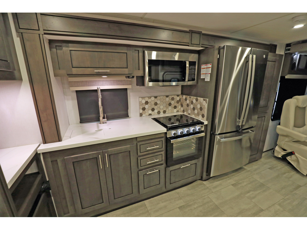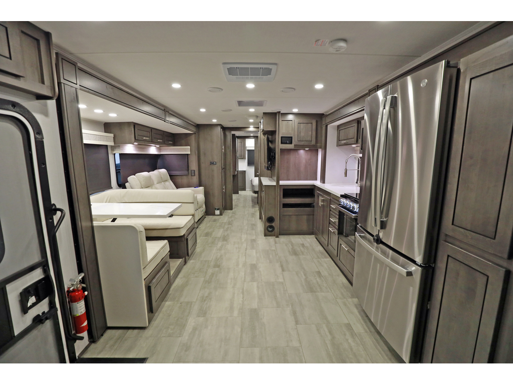 disponible sur commande - available on order Forest River Georgetown Série 5 GT5 modèle 34H5 ! Nouvelle interieur ! mesure environ 37 pieds 10 pouces de longueur avec un lit king size, un canapé-lit de théâtre, le nouveau châssis Ford avec 7,3 V8 , un combiné d'instruments mis à jour, des phares automatiques et un volant inclinable / télescopique. L'équipement en option comprend le magnifique extérieur partiellement peint et le lit en haut du conducteur avant électrique P2K. Le Forest River Georgetown GT5 comprend une foule de normes, y compris un toit en fibre de verre monobloc, un robinet en acier inoxydable avec pulvérisateur coulissant, un cap avant en fibre de verre avec des lumières d'accentuation à DEL, des portes de bagages à charnière latérale à loquet à claquer, un auvent de terrasse électrique avec éclairage à DEL, «Super Storage «Compartiment de chargement arrière, douche extérieure, système d'inverseur de 2000 watts, siège conducteur à commande électrique, stores à rouleau partout, téléviseurs à LED, vérins de nivellement hydrauliques, générateur NPS de 5500 Watts , laveuse/secheuse etc. etc. www.citecaravane.com 450-623-5050 170 rue dubois ,St-eustache J7P 4W9 Forest River Georgetown 5 Series GT5 Model 34H5 is approximately 37 feet 10 inches in length featuring a king size bed, theater seating sofa, the new Ford chassis with 7.3L PFI V-8, 350HP, 468 ft. lbs. torque engine, a 6-speed TorqShift® automatic transmission, an updated instrument cluster, automatic headlights and a tilt/telescoping steering wheel. Optional equipment includes the beautiful partial paint exterior and the P2K power front overhead loft. The Forest River Georgetown GT5 features a host of standard including a one piece fiberglass roof, stainless steel faucet with pull out sprayer, fiberglass front cap with LED accent lights, slam latch side hinge baggage doors, power patio awning with LED light, Super Storage rear cargo compartment, exterior shower, 2,000 watt inverter system, power driver seat, roller shades throughout, LED TVs, hydraulic leveling jacks, 5500 watt NPS generator, , washer dryer etc etc etc www.citecaravane.com 450-623-5050 170 rue dubois , St-eustache