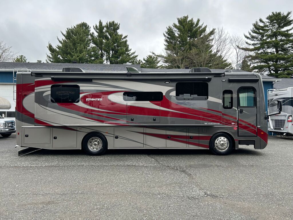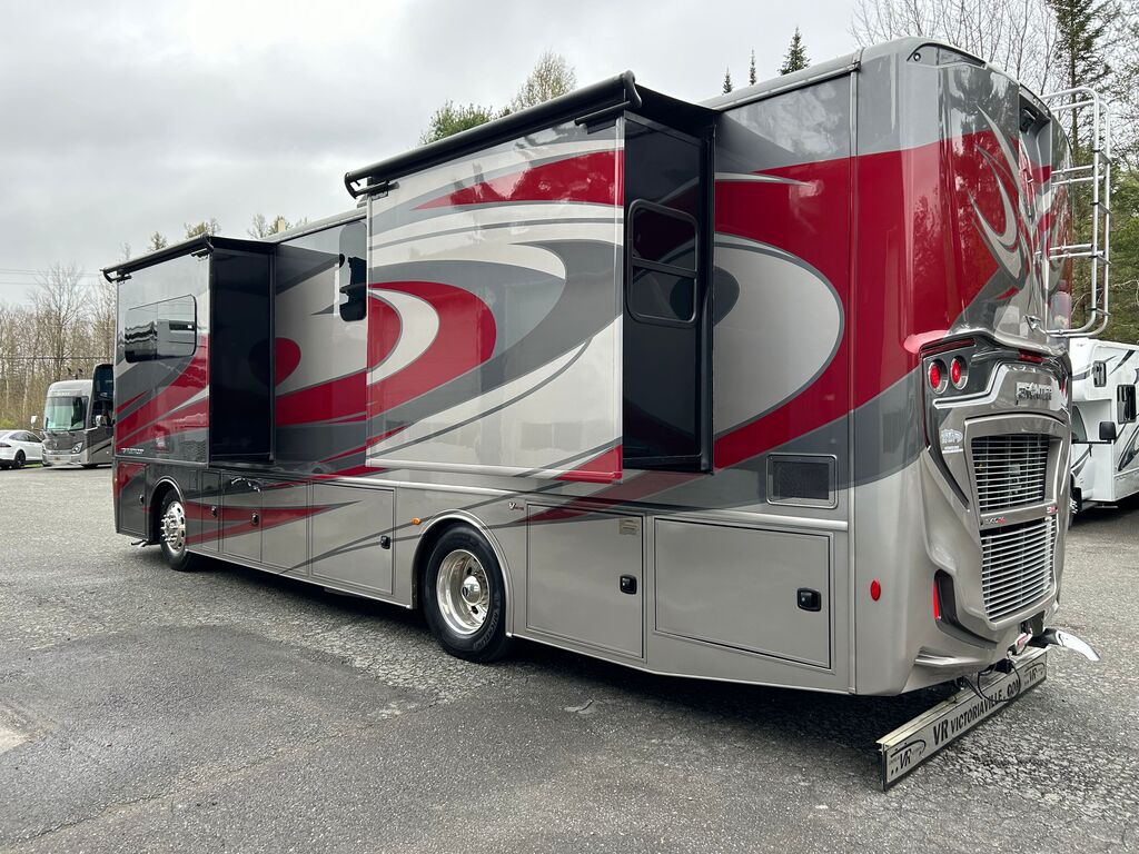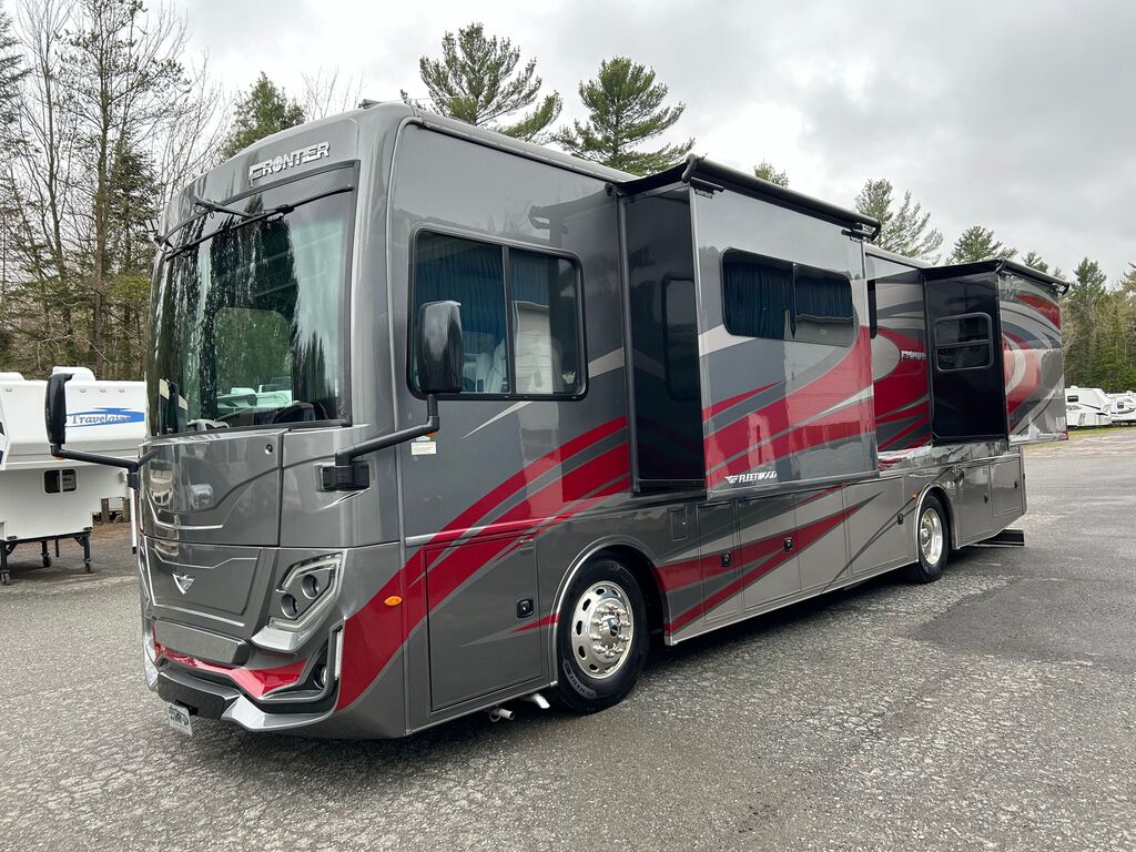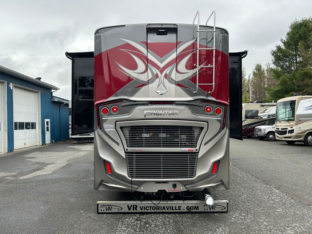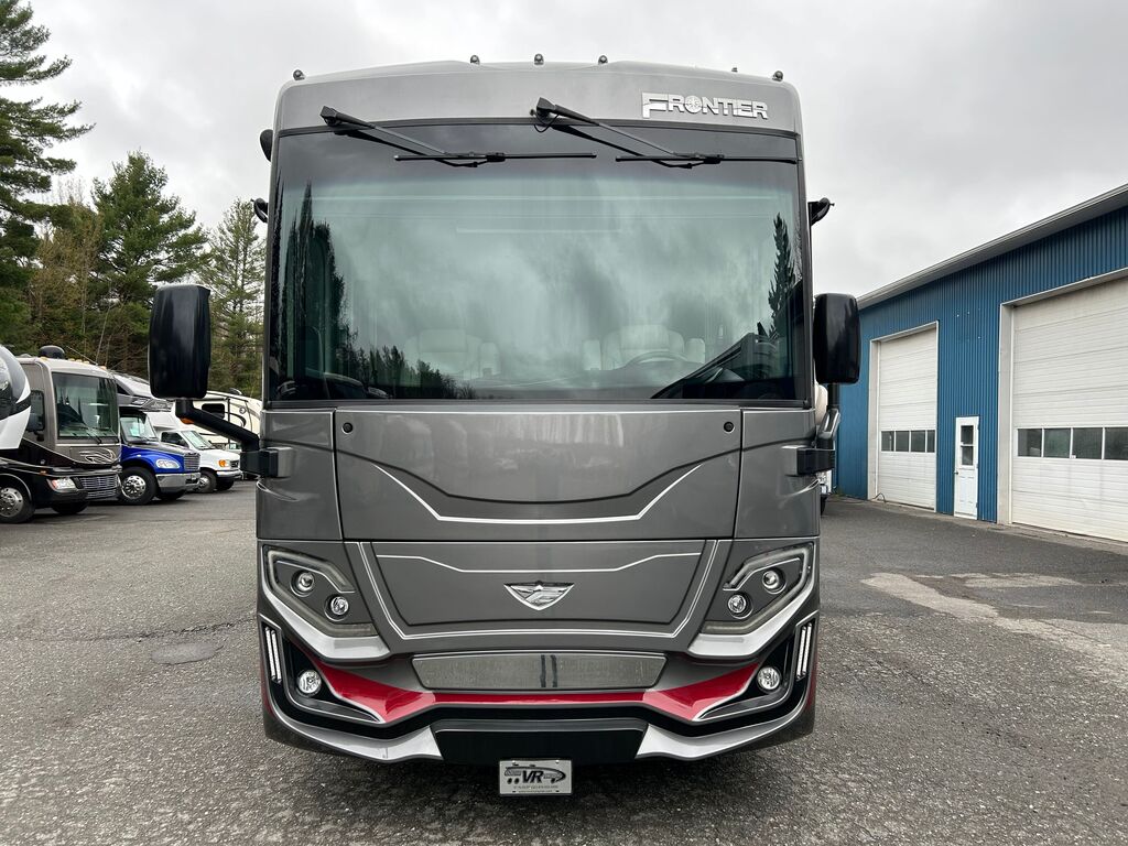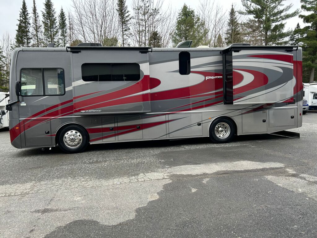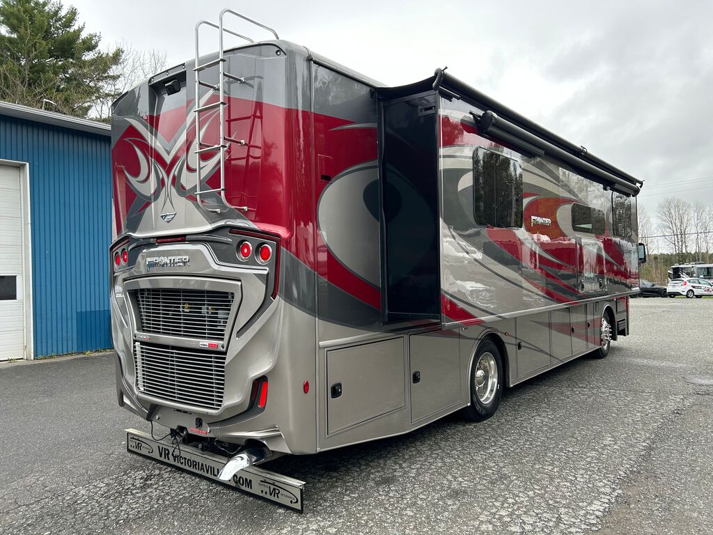 Fleetwood Frontier 34GT 2022, Mécanique Cummins I6 Diesel Pusher, Chassis Freightliner XC Series, Génératrice Cummins Onan Quiet Diesel 6000W, Système de chauffage dans le plancher Aqua-Hot, Drop-bed avant, Foyer électrique, Causeuse style cinéma maison, Téléviseur 50 pouces rabattable dans le mur, Micro-ondes 30 pouces en stainless à convection, plaque de cuisson, Grand évier de stainless, Réfrigérateur électrique résidentiel, Ensemble laveuse/sécheuse, Grande chambre arrière avec beaucoup de rangement, Lit King, Contrôle multiplex pour tout contrôler à porter de main, VR qui a été vendu neuf chez VR Victoriaville et qui a toujours été bien entretenu. Une visite vous convaincra! Année : 2022 Mécanique : Cummins I6 Diesel Pusher 340HP Châssis : Freightliner XC Series Carburant : Diesel Transmission : Automatique Allison 6 vitesses Motricité : 4X2 Longueur hors-tout(pieds) : 35.3 Largeur(pieds) : 8.5 Hauteur(pieds) : 12.8 Empattement(pouces) : 206 PNBV(Lbs) : 32,400 Réservoir essence(Gal.) : 100 Capacité eau fraîche(Gal.) : 96 Capacité eau grise(Gal.) : 65 Capacité eau noir(Gal.) : 45 Capacité réservoir propane(Lbs) : N/A Nombre d’extensions : 3 Capacité d’hébergement : 5 Pneus : 275/80R 22.5 Air conditionné(BTU) : 27,000