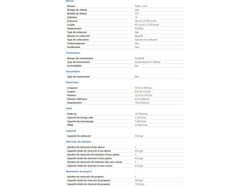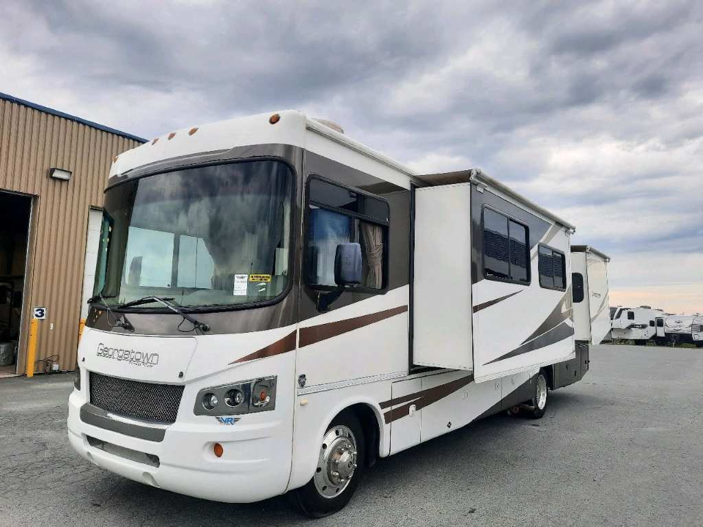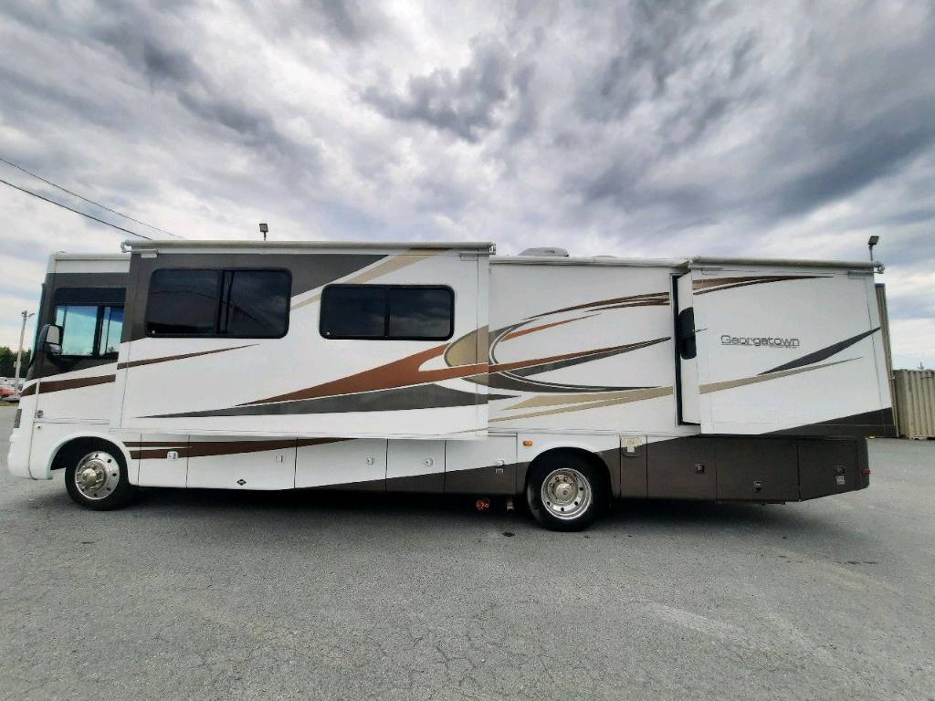Paiement à partir de 0$/sem. + TX. 2011 Georgetown 350TS Classe A luxueux de 35 pieds sur châssis Ford avec mécanique 6.8L à essence fiable et éprouvée chaussé sur le 22.5'' sur mags !132 686 KM - Cap arrière moulé - Semi-paint - Grands coffres en aluminium - Deux lits superposés, Sofa-lit, chambre fermée à un lit queen avec télévision, douche vitrée - Télévision - Plusieurs espaces de rangement - Réfrigérateur propane/électrique - Auvent électrique de 14 pieds - Auvent d'extension et plus encore ! Pneus à prévoir si vous faites de grande distance - N'a plus de génératrice - Le miroir manquant dans la chambre sera remplacé. Contactez nos conseillers par téléphone, courriel ou texto ! Nous acceptons les échanges de tout genre et on s'occupe de votre financement sur place ! VR Thetford est votre spécialiste en véhicules récréatifs et de loisirs (VR, motorisés, roulottes, fifth wheel, remorques, VTT, côte-à-côte et motoneiges). Notre équipe saura vous guider dans votre choix de véhicules et d accessoires. Nous sommes concessionnaire Jayco, Passport, Flagstaff, Compass, Magnitude, Outlaw, Alcom, Idéal Cargo, Laroche, Talaria et Polaris ! Au plaisir de vous servir ! *Photos à titre indicatif. Certains accessoires et équipements pourraient être en sus* *Prix sujet à changement sans préavis, valider le prix auprès d'un conseiller*