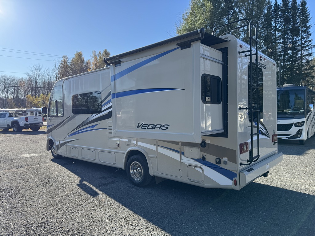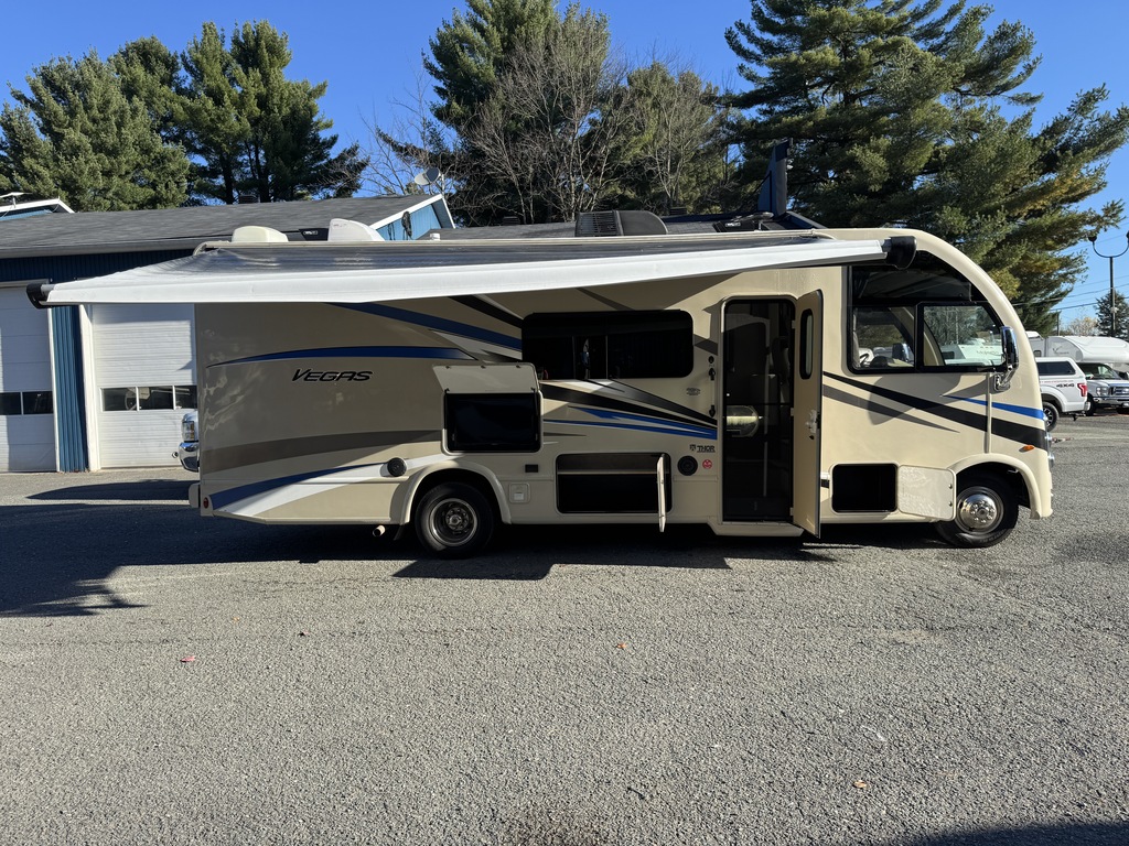 Thor Vegas 25.3 2018, Mécanique Ford Triton V10, Génératrice Onan 4 000W, Lit rabattable au dessus du conducteur, Auvent électrique de 18 pieds, Réfrigérateur au propane, Téléviseur extérieur avec système audio, Table en banquette, Lit queen à l'arrière, Chauffe-eau instantanné, Poêle 2 ronds au propane, Micro-ondes à convection, Lumières accents et beaucoup plus!! Année : 2018 Mécanique : Ford 6.8L Triton V10/ 305HP, 420 lb-pi torque Châssis : Ford E-Series Carburant : Essence Transmission : Torqshift 6 vitesses avec overdrive Motricité : 4X2 Longueur hors-tout(pieds) : 26.5 Largeur(pieds) : 7.8 Hauteur(pieds) : 11.4 Empattement(pouces) : 188 PNBV(Lbs) : 14,500 Réservoir essence(Gal.) : 55 Capacité eau fraîche(Gal.) : 50 Capacité eau grise(Gal.) : 30 Capacité eau noir(Gal.) : 41 Capacité réservoir propane(Lbs) : 40.9 Nombre d’extensions : 1 Capacité d’hébergement : 4 Pneus : 225/75R 16 Air conditionné(BTU) : 15,000 Chauffage(BTU) : 30,000 Capacité chauffe-eau(Gal.) : Instantanné