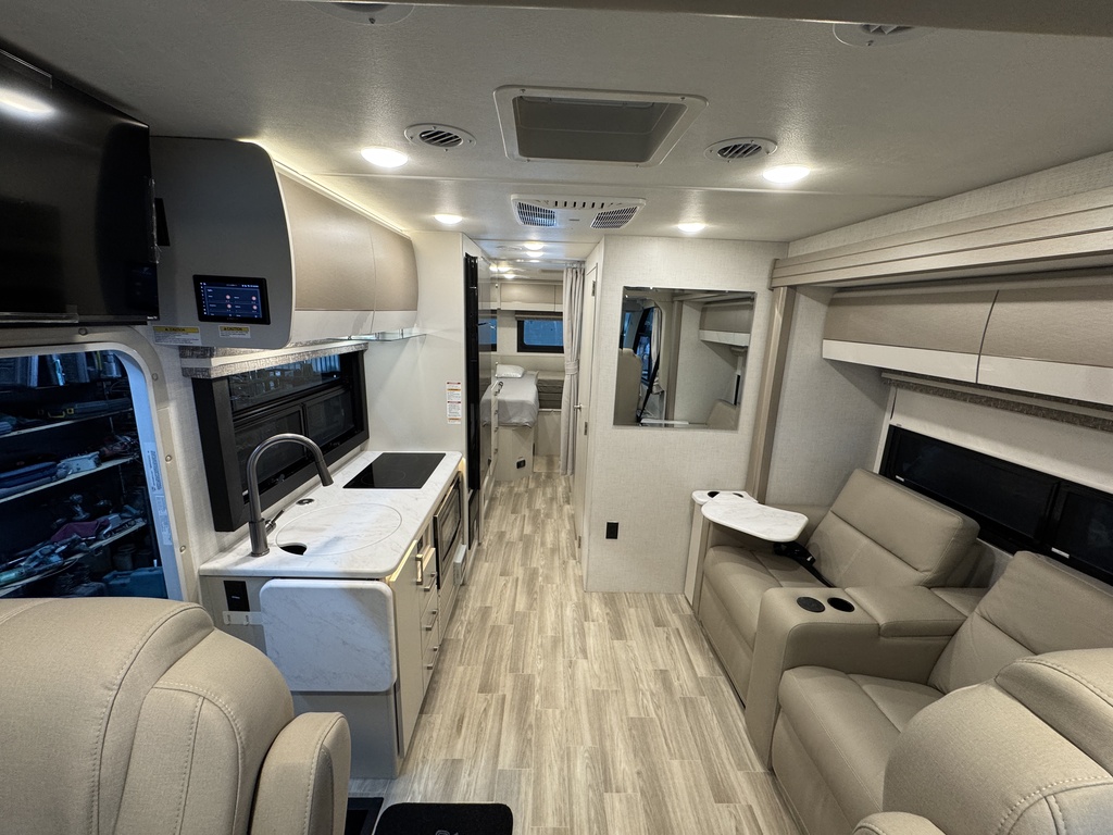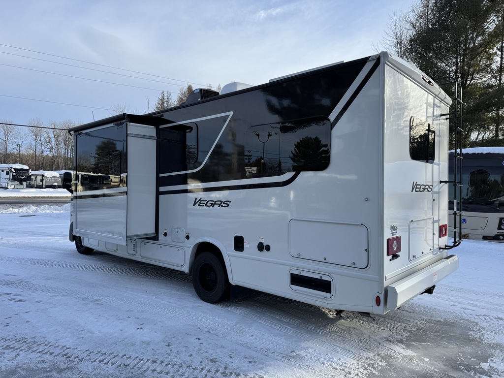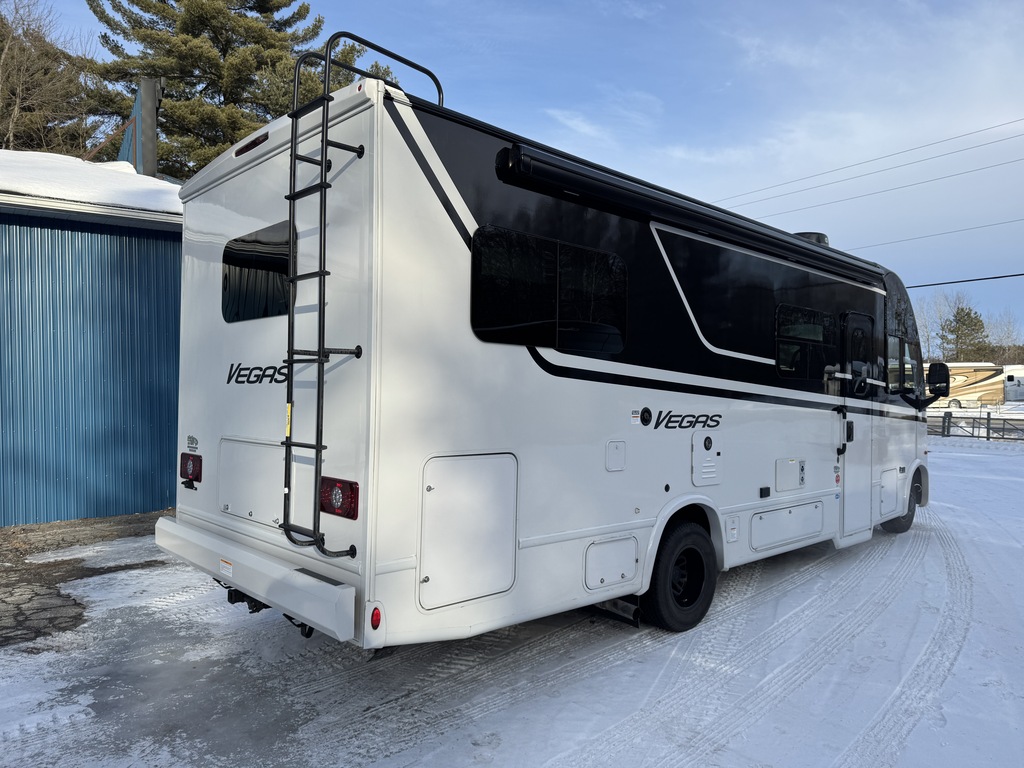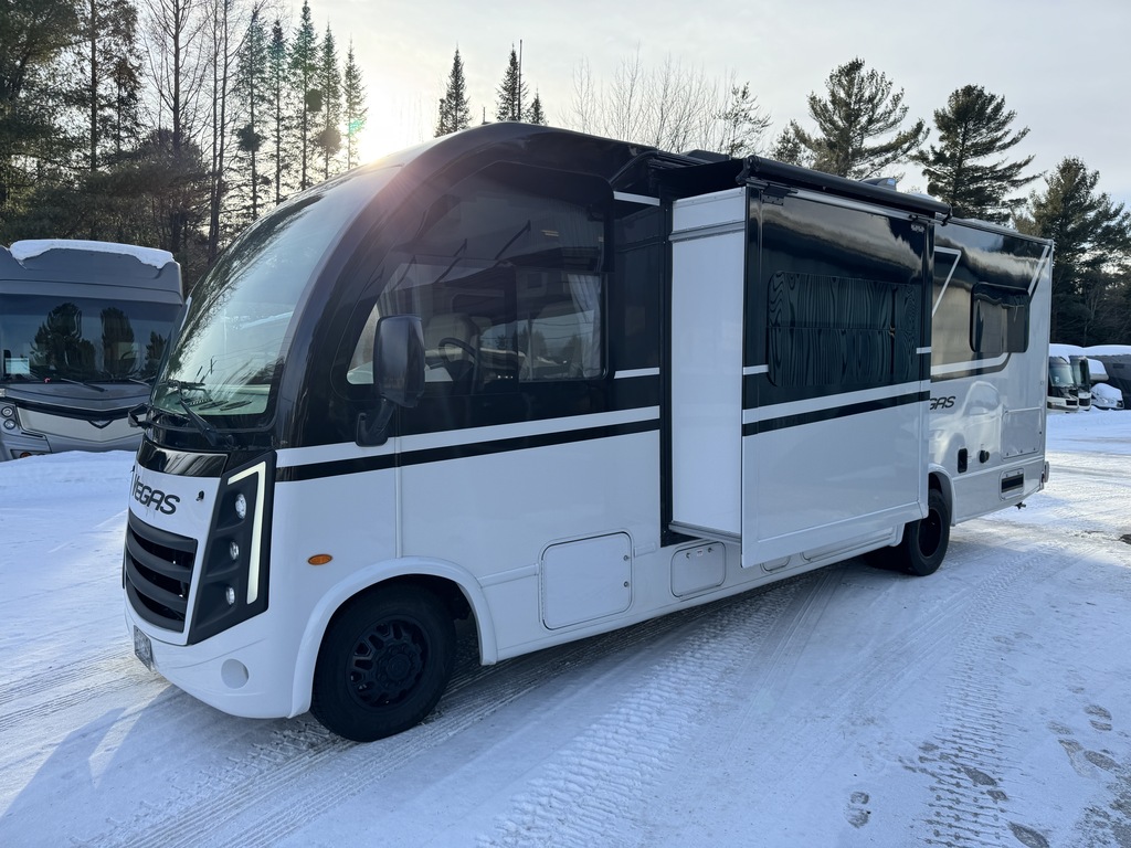 Magnifique Thor Vegas 26.2 2026 en condition impeccable, Châssis Ford avec mécanique Ford 7.3L V8, Vient avec l'option de peinture extérieur "Black Jack", Détient également l'option des stabilisateurs électriques, Écran tableau de bord tactile de 14 pouces avec commande Apple CarPlay et Android Auto, Lit escamotable électrique à l'avant, Tablette multiplex BMPro située à l’entrée du motorisé permettant le contrôle complet du VR, Sofa double style cinéma, Grand réfrigérateur 12V, Four à micro-ondes à convection avec fonction cuisson à air chaud(AIr Fryer), 2 lit double dans la chambre des maîtres qui se transforme en lit King, Génératrice 4 000W gas/LP avec système de démarrage automatique(AGS), Panneau solaire 100W et beaucoup plus! Année : 2026 Mécanique : Ford 7.3L V8 Châssis : Ford E-Series Carburant : Essence Transmission : TorqShift 6 vitesses Motricité : 4X2 Longueur hors-tout(pieds) : 27.3 Largeur(pieds) : 94 Hauteur(pieds) : 11 Empattement(pouces) : 188 PNBV(Lbs) : 14,500 Réservoir essence(Gal.) : 55 Capacité eau fraîche(Gal.) : 41 Capacité eau grise(Gal.) : 40 Capacité eau noir(Gal.) : 30 Capacité réservoir propane(Lbs) : 40.9 Nombre d’extensions : 1 Capacité d’hébergement : 4 Pneus : LT225/75R16 Air conditionné(BTU) : 15,000 Chauffage(BTU) : 35,000 Capacité chauffe-eau(Gal.) : Instantannée