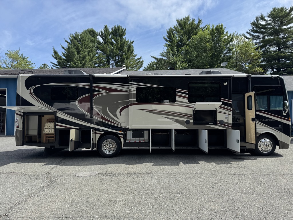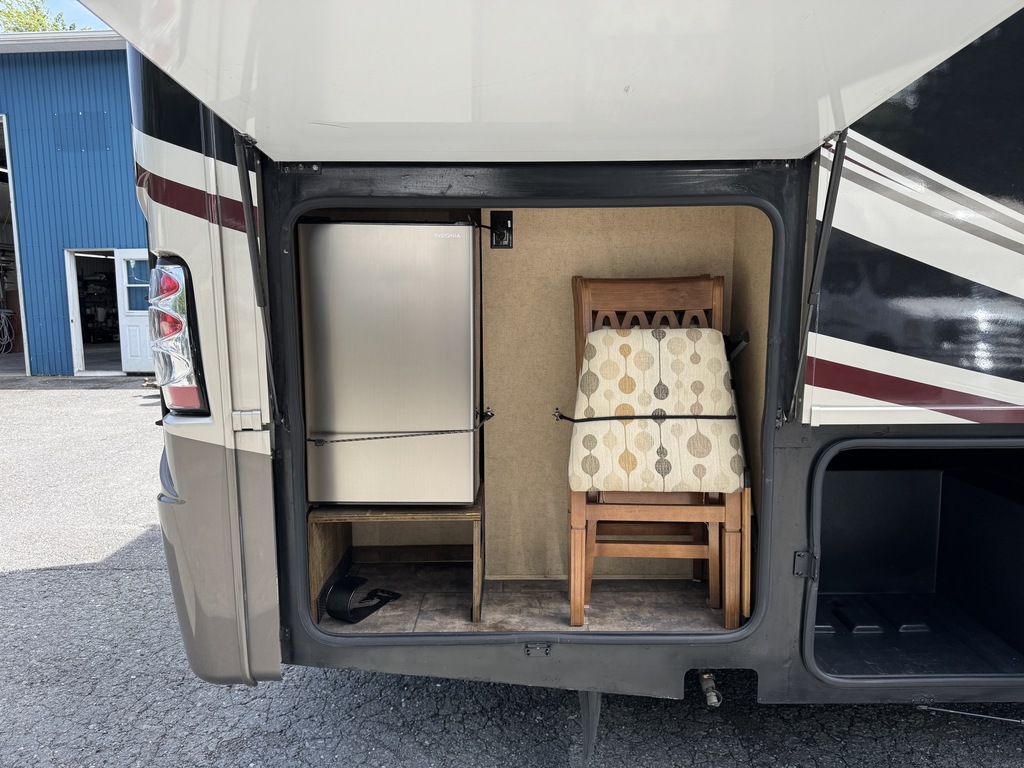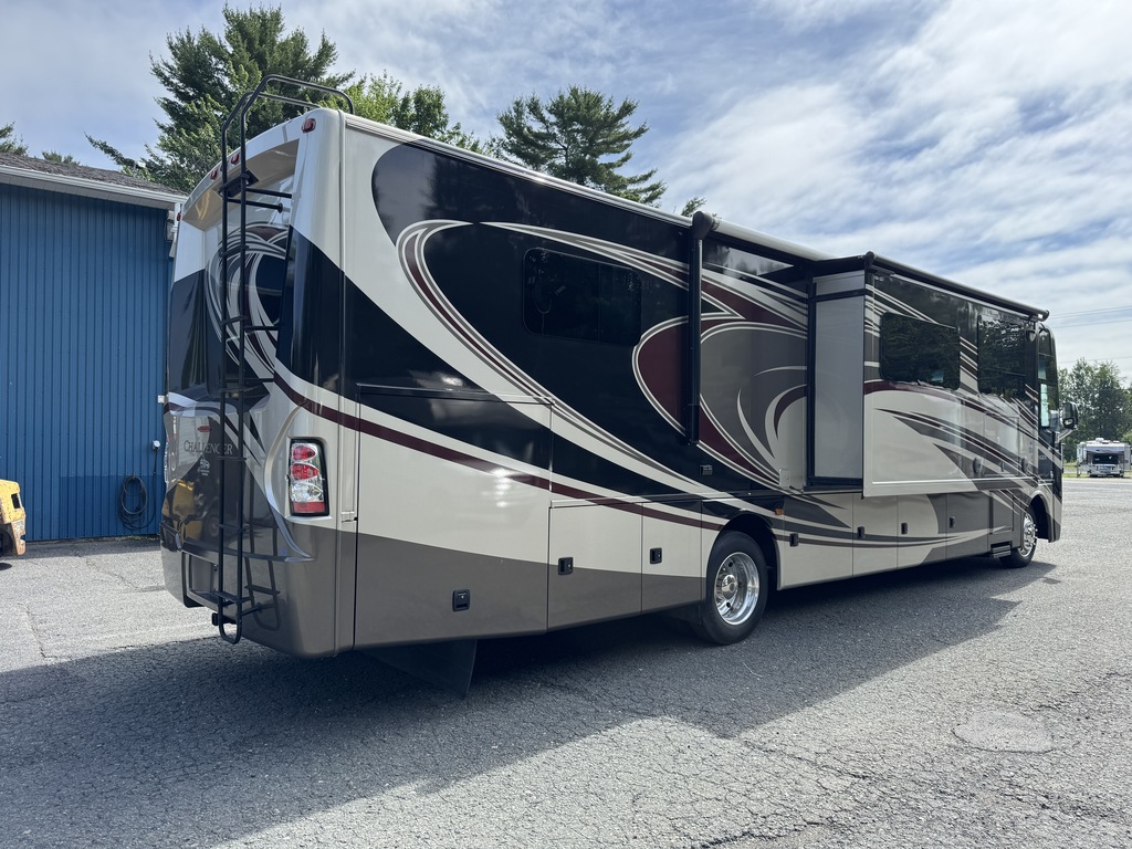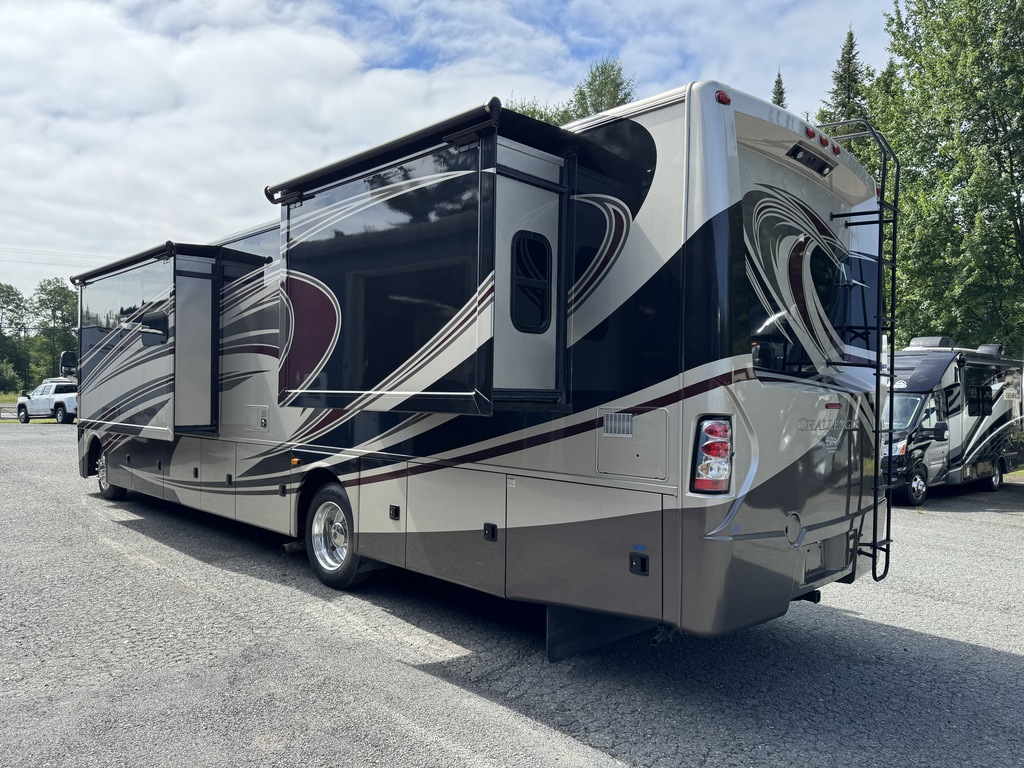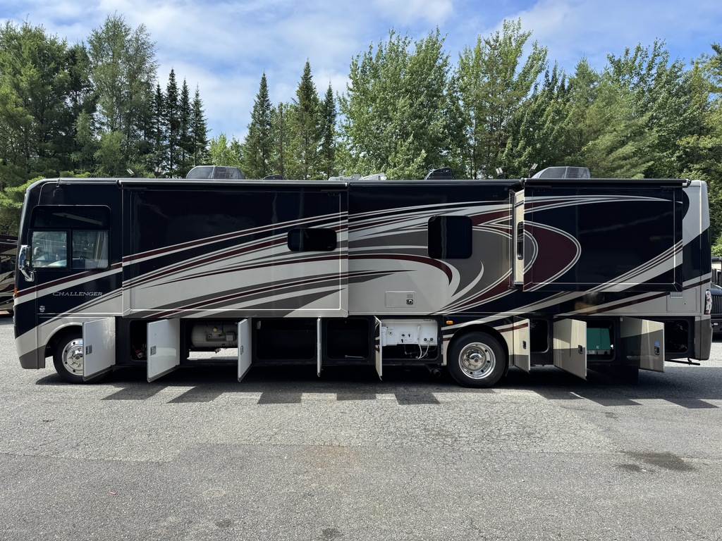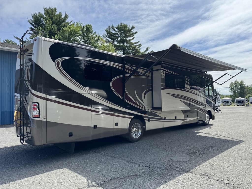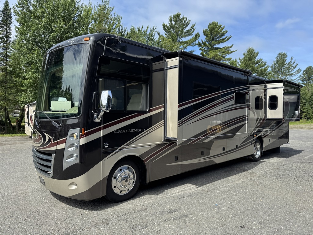 Thor Challenger 37ND 2015, Mécanique Ford V-10 Triton, Génératrice Onan 5 500W avec démarrage automatique programmable, Convertisseur de courant 1 800W, Roues aluminium Alcoa 22.5 pouces, Fenêtres sans cadres, Cuisinette extérieur, Téléviseur extérieur, Système audio bluetooth intérieur/extérieur, Drop-bed à l'avant, Jack hydraulique automatique, Auvent électrique de 21 pieds, Table à manger ajustable avec chaises, Divan-lit, Réfrigérateur résidentiel électrique Whirlpool, Poêle et four au propane, Micro-ondes à convection, Téléviseur 40 pouces avec barre de son dans le salon, Foyer électrique, Lit king dans la chambre des maîtres, Laveuse/sécheuse, Garde-robe avec porte coulissante, Grande coffre de rangement extérieur et beaucoup plus! Année : 2015 Mécanique : Ford V-10 Triton Châssis : Ford F-Series Carburant : Essence Transmission : Torqshift 5 vitesses Motricité : 4X2 Longueur hors-tout(pieds) : 38.08 Largeur(pieds) : 8.42 Hauteur(pieds) : 12.75 Empattement(pouces) : 252 PNBV(Lbs) : 22,000 Réservoir essence(Gal.) : 80 Capacité eau fraîche(Gal.) : 100 Capacité eau grise(Gal.) : 80 Capacité eau noir(Gal.) : 40 Capacité réservoir propane(Lbs) : 105 Nombre d’extensions : 3 Capacité d’hébergement : 6 Pneus : 225/80R 22.5 Air conditionné(BTU) : 2X 13,500 Chauffage(BTU) : 34,000 Capacité chauffe-eau(Gal.) : 6