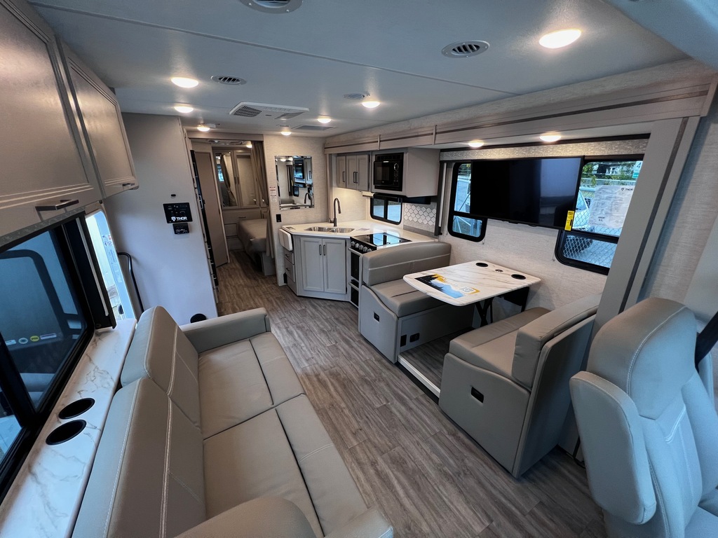 ?? Thor Motor Coach A.C.E. 29G 2024 – Motorisé Classe A neuf, lit king, Ford V8, VR familial, option laveuse/sécheuse Le Thor Motor Coach A.C.E. 29G 2024 neuf est un motorisé classe A très recherché pour son espace, son confort et sa polyvalence. Construit sur un châssis Ford robuste et équipé du puissant moteur V8 Ford, ce VR neuf 2024 offre une conduite stable, une excellente capacité de remorquage et une fiabilité idéale pour les longs voyages. Ce modèle se démarque aussi par une caractéristique rare : la préparation pour laveuse/sécheuse, avec possibilité d’installation directement chez nous — un atout majeur pour les voyageurs longue durée. ? Caractéristiques clés du Thor A.C.E. 29G 2024 (VR neuf) Motorisé neuf 2024 sur châssis Ford Moteur V8 Ford puissant, fiable et performant Lit king dans la chambre arrière — idéal pour un VR de luxe Lit escamotable cabine, parfait pour un VR familial Grand espace de vie avec sofa, dinette et slide-out Cuisine complète : réfrigérateur résidentiel, cuisinière, micro-ondes, nombreux rangements Salle de bain moderne avec douche Préparation laveuse/sécheuse, installation possible Technologie embarquée : écran tactile, connectivité intelligente, système multimédia Climatisation et chauffage quatre saisons Design intérieur contemporain, éclairage DEL, matériaux durables ?? Pourquoi choisir ce motorisé classe A neuf? Le Thor A.C.E. 29G 2024 neuf combine confort, espace, polyvalence et autonomie. Son lit king, son VR familial bien aménagé et l’option laveuse/sécheuse en font un choix idéal pour les familles, les snowbirds, les voyageurs longue durée et ceux qui recherchent un motorisé neuf prêt à partir. Un VR classe A qui offre un excellent rapport qualité-prix.