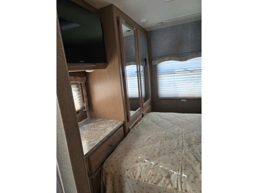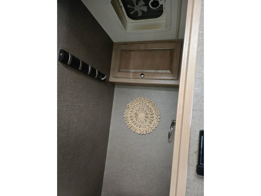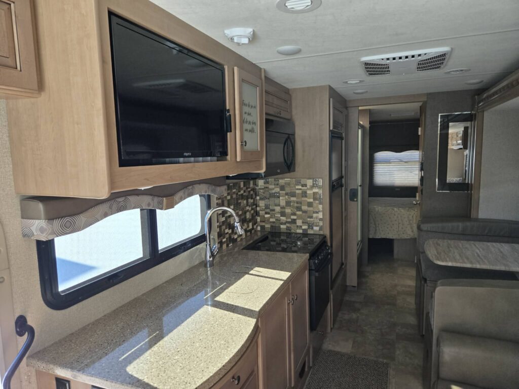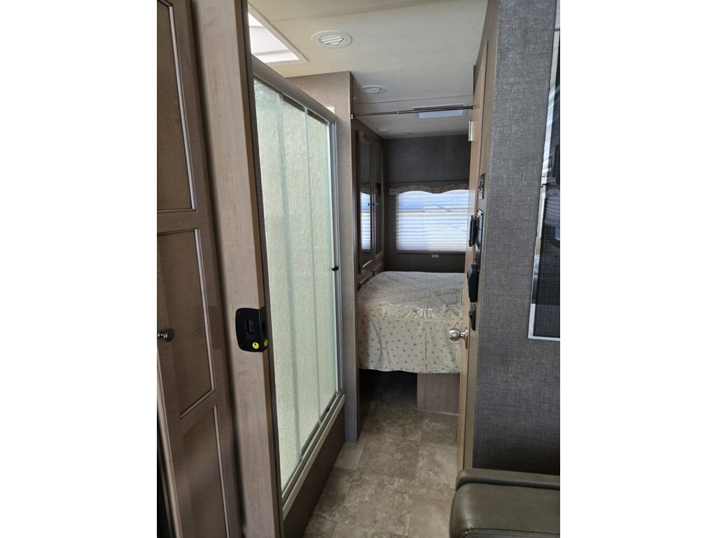 Options : Génératrice à essence, Réservoir de propane, Climatiseur au plafond, Climatiseur conduit central, Miroirs électriques, Régulateur de vitesse, Volant inclinable, Caméra Marche arrière, Douche extérieure, Attache-remorque, Douche, Toilette, Lit queen-size, Détecteur LPG/CO2, Chaine stéréo, Prise cable, Antenne pour téléviseur, Micro-onde, Cuisinière, Hotte, Auvent, Chauffe-eau, Couchette