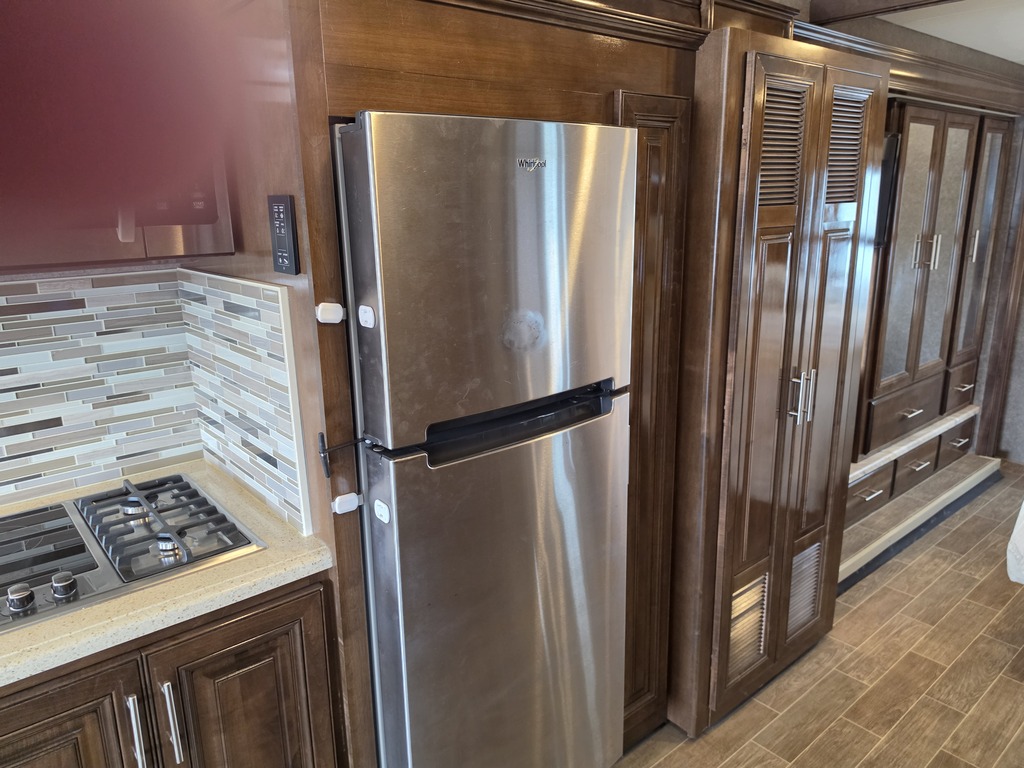 Options : Freins ABS, Jantes aluminium, Génératrice à essence, Convertisseur de courant continu, Réservoir de propane, Climatiseur au tableau de bord, Climatiseur conduit central, Miroirs électriques, Régulateur de vitesse, Volant inclinable, Caméra Marche arrière, Échelle, Attache-remorque, Douche, Toilette, Lit queen-size, Lit arrière, Canapé-lit, Prise électrique, Cric électrique, Détecteur LPG/CO2, Téléviseur, Chaine stéréo, Antenne pour téléviseur, Micro-onde, Cuisinière, Hotte, Auvent, Chauffe-eau, Chauffe-eau à allumage direct
