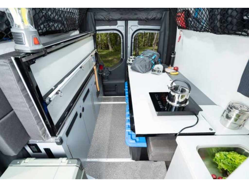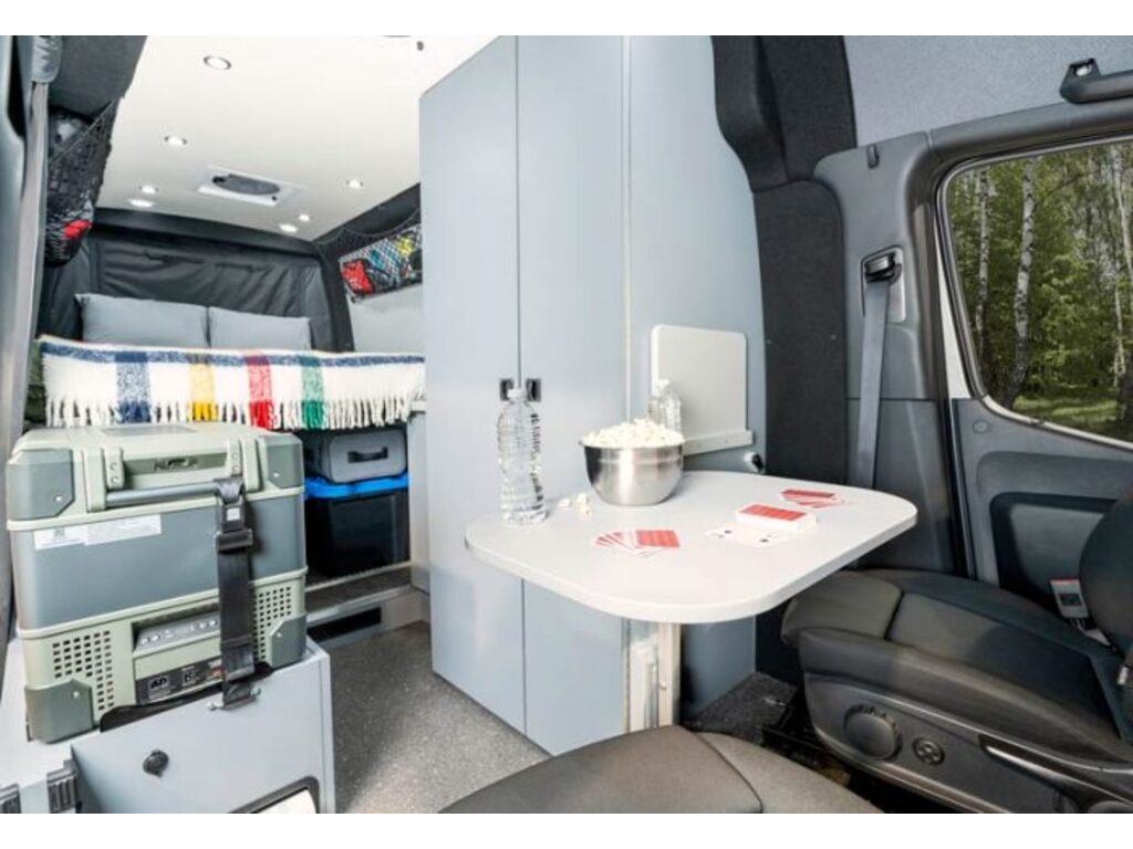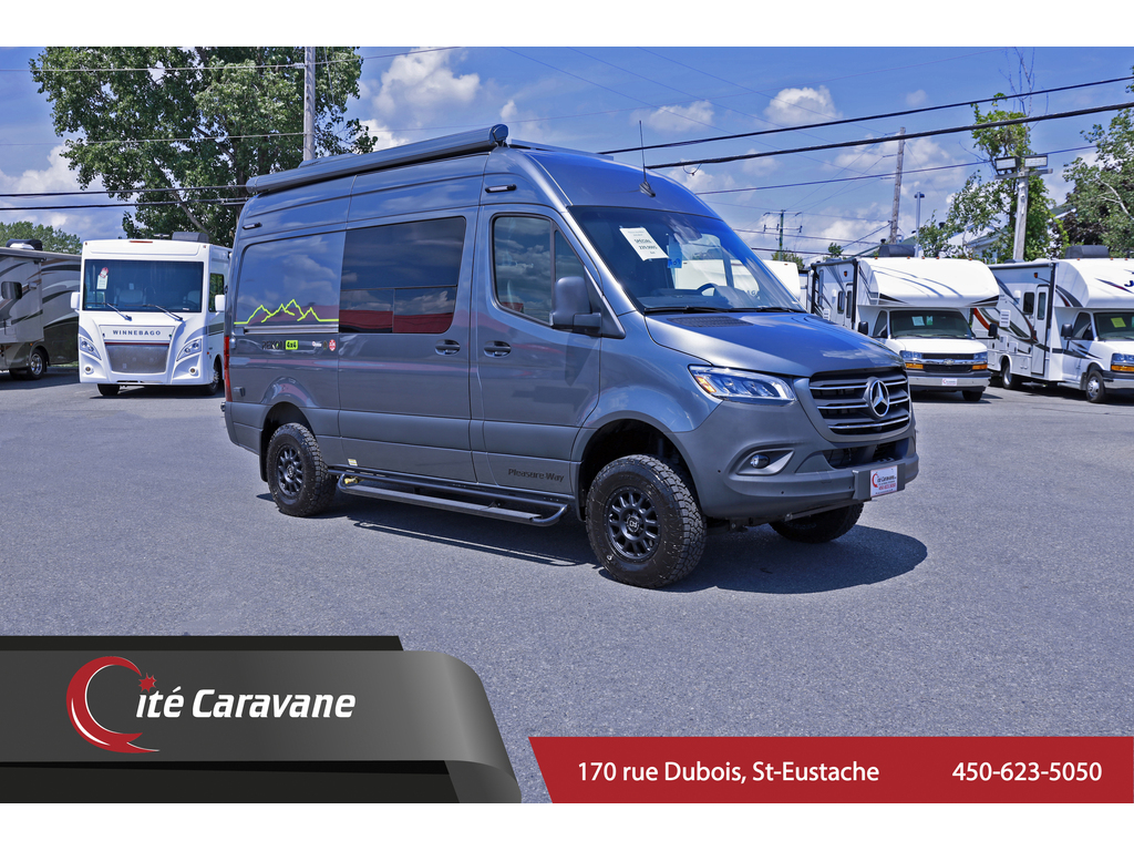 Pleasure way Rekon Sur le plateforme Mercedes benz 4x4 , 3.0L 6 cylindre turbo diesel Ces équipements standard comprenent un panneau solaire : 300 Watts , des moustiquaires arrière et latérale , un lit rétractable 70‘’ x 72’’ , système de table Lagun 360 , bureau derrière le siège conducteur , éclairage encastré LED au plafond , Isolation 3M Thinsulate , Réfrigérateur 2.1 pieds cube 12V/110 portatif , Cuisinière à induction portatif , Poste de travail rétractable 72’’ x 22.5’’ , Toilette à cassette 5 Gallons , Éclairage LED , Quatres batteries 100Ah Eco-Ion Earth Smart Lithium , Démarrage automatique du générateur , Xantrex™ Onduleur 2000W Centre de commande de climatisation avec thermostat pour climatisation, ventilation et chauffage , Auvent électrique Fiamma® avec lampes LED , Jantes Black Rhino Havasu , Truma VarioHeat 11 500 BTU , Ventilateur Dometic Fan-Tastic Vent avec capteur de pluie Plomberie , Chauffe-eau instantané Trauma AquaGo® comfort plus , Connection rapide LP BBQ , Système d’eau automatique Shurflo® , Réservoir propane 20L transportable , Système L-track & Tie-down , Espace cargo 124 pieds cube sans le lit , Espace cargo 52 pieds cube avec le lit www.citecaravane.com 450-623-5050 170 rue dubois , St-eustache J7P 4W9 Pleasure way Rekon On the Mercedes benz 4x4 platform, 3.0L 6 cylinder turbo diesel This standard equipment includes a solar panel: 300 Watts, rear and side mosquito nets, a 70'' x 72'' retractable bed, Lagun 360 table system, desk behind the driver's seat, recessed LED ceiling lighting, 3M Thinsulate insulation, 2.1 Cubic Feet 12V/110 Portable Refrigerator , Portable Induction Range , 72'' x 22.5'' Retractable Work Station , 5 Gallon Cassette Toilet , LED Lighting , Four 100Ah Eco-Ion Earth Smart Lithium Batteries , Automatic Generator Start , Xantrex™ 2000W Inverter Climate control center with thermostat for air conditioning, ventilation and heating , Fiamma® electric awning with LED lights , Black Rhino Havasu rims , Truma VarioHeat 11,500 BTU , Dometic Fan-Tastic Vent fan with rain sensor Plumbing , Trauma AquaGo® comfort plus instantaneous water heater , LP BBQ quick connection , Shurflo® automatic water system , Transportable 20L propane tank , L-track & Tie-down system , Cargo space 124 cubic feet without the bed , Cargo space 52 cubic feet with bed www.citecaravane.com 450-623-5050 170 rue dubois, St-eustache J7P 4W9