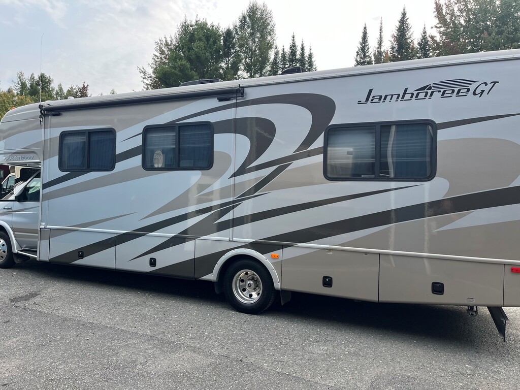 FLEETWOOD JAMBOREE GT 31W 2009 FULL PAINT châssis Ford roue Alcoa ,auvent électrique grand coffre peut dormir 5 personnes chambre fermée tres luxueux ,comptoir en coréen armoire robuste trop a énumérer a voir