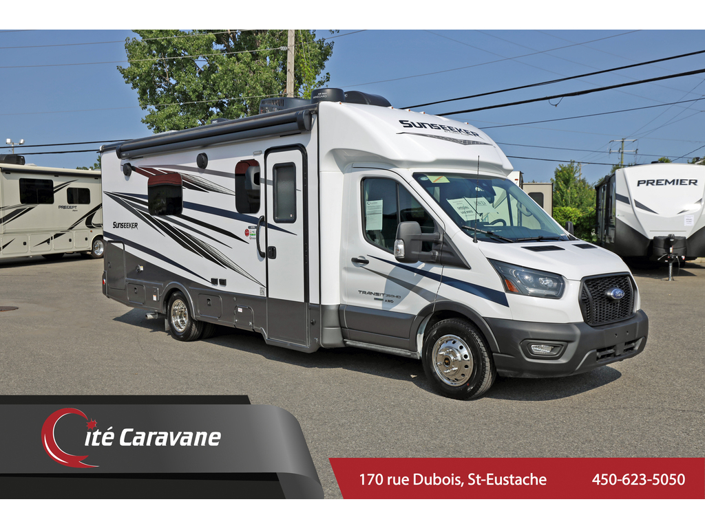 Forest River Sunseeker 2370 NEUF B+ ! Skirt Paint 1 extension chassis Ford Transit Ecoboost gas AWD ! Prise 30AMP, chauffage 30,000BTU , A/C au toit 13.5BTU canalisé , murs de 2 pouce, fini gel-coat , toit en fibre de verre ,auvent électrique, lecteur AM/FM/CD/DVD,TV , frigidaire 6 pieds cube , tiroirs style résidentiel , cuisinière a deux bruleurs avec four, stores , plafond de 7 pieds , génératrice de 2800watts onan, batteries auxiliaire, micro-onde , Arctic Pack ( 4 saisons ) Prélart a grandeur Beauflor , antenne digitale, comptoirs de luxe, camera+ haut parleur exterieur. 1332$/MOIS + taxes ! www.citecaravane.com 450-623-5050 170 RUE DUBOIS , ST-EUSTACHE, SUR LE BORD DE LA 640! UNE ENTREPRISE FAMILIALE A VOTRE SERVICE DEPUIS 1973 ! , DÉPOSITAIRE NUMÉRO 1 FOREST RIVER SUNSEEKER ! LE SPÉCIALISTE DU VR AU QUÉBEC Sunseeker 2370 Transitl Skirt paint , Ford Transit Ecoboost gas ! AWD 30AMP , 6 gallon water heater , 30,000BTU heater , 13.5BTU ducted roof A/C , 2 inches thick walls , gel-coat exterior , fiberglass roof , electric awning , , CD/DVD/AM/FM, TV , 6 cubic feet fridge , residential style drawers , 2 burners stove , microwave , night shades , 7 feet high ceilings , 2800watts Onan generator, auxiliary battery, , arctic pack ( 4 seasons ) , Beauflor linoleum throughout , Digital Antenna ,Upgraded countertops,back up camera+ 1332$/MONTH+taxes. www.citecaravane.com 450-623-5050 ! CALL US TODAY ! Cité Caravane, 170 rue Dubois in Saint-Eustache, adjacent to the 640 highway. A FAMILY OWNED BUISNESS SINCE 1973 ! QUÉBEC s RV SPECIALIST !