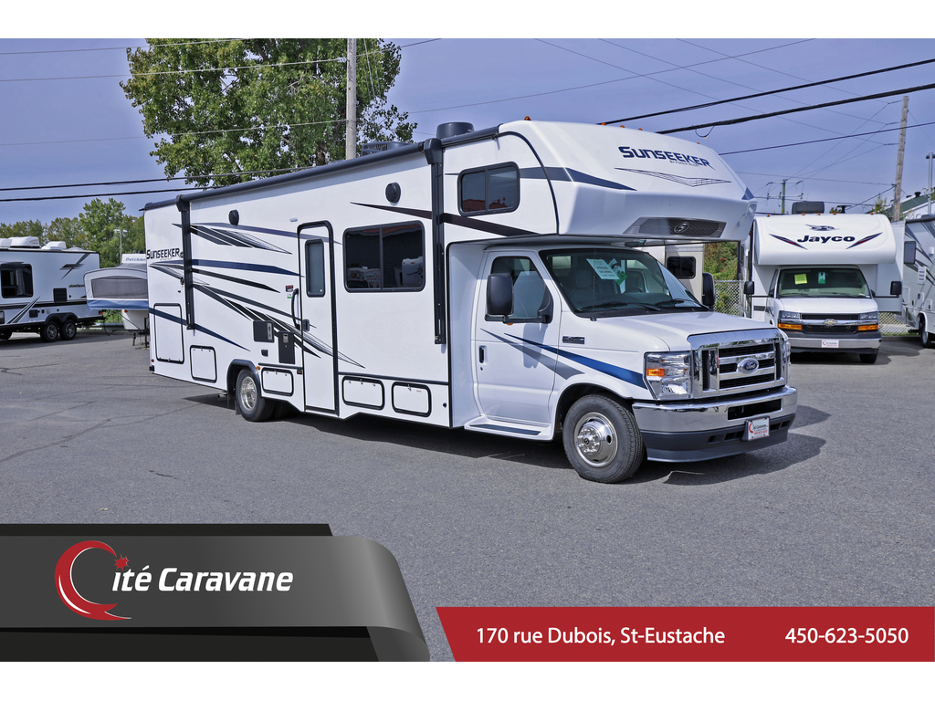 Forest River Forester CLASSE C 31 pieds 3051 -extension a mur plein + crics hydraulics , Ford V8 7.3L , Prise 30AMP , chauffe eau 6 gallons , chauffage 30,000BTU , A/C au toit 13.5BTU canalisé , ballons a air ride rite , murs de 2, fini gel-coat , toit en fibre de verre , auvent électrique , hitch de 7500lbs , TV , frigidaire 10 pieds cube , tiroirs styles résidentiels ,stores de nuit , plafond de 7 pieds , génératrice de 4000watts onan, 2 batteries auxiliaires , micro-onde a convection , sièges avant en cuirette. OPTIONS INCLUS : Crics hydrauliques, panneau solaire, Full paint, arctic Pack ( 4 saisons ) couvert en fibre de verre , matelas Queen , Prélart a grandeur Beauflor , antenne digitale, comptoirs de luxe, *PREMIUM CAMPING PACKAGE (miroirs chauffants/électrique, caméra de recul + latéral et latérales, cinéma maison 5.1 , black tank flush) ! ! www.citecaravane.com 450-623-5050 170 RUE DUBOIS , ST-EUSTACHE, SUR LE BORD DE LA 640! UNE ENTREPRISE FAMILIALE A VOTRE SERVICE DEPUIS 1973 ! , DÉPOSITAIRE NUMÉRO 1 FOREST RIVER SUNSEEKER ! LE SPÉCIALISTE DU VR AU QUÉBEC ! Forest River Forester CLASS C 31 feet 3051 full wall slide + crics hydraulics - Ford V-8 7.3L , 30AMP , 6 gallon water heater , 30,000BTU heater , 13.5BTU ducted roof A/C , ride rite air suspension , 2inch thick walls , gel-coat exterior , fiberglass roof , electric awning , 7500lbs hitch , TV , 10cubic feet fridge , residential style drawers , convection micro-wave , night shades , 7 feet high ceilings , 4000watts Onan generator, 2 auxiliary batteries , leatherette front seats INCLUDED OPTIONS :bigfoot jacks, solar panel, arctic pack ( 4 seasons ) , fiberglass front cap , Queen matress , Beauflor linoleum throughout , Digital Antenna ,Upgraded countertops,*PREMIUM CAMPING PACKAGE (heated/electric mirrors,back up and side cameras, 5.1 surround sound,black tank flush)+. www.citecaravane.com 450-623-5050 ! CALL US TODAY ! Cité Caravane, 170 rue Dubois in Saint-Eustache, adjacent to the 640 highway. A FAMILY OWNED BUISNESS SINCE 1973 ! QUÉBEC s RV SPECIALIST !