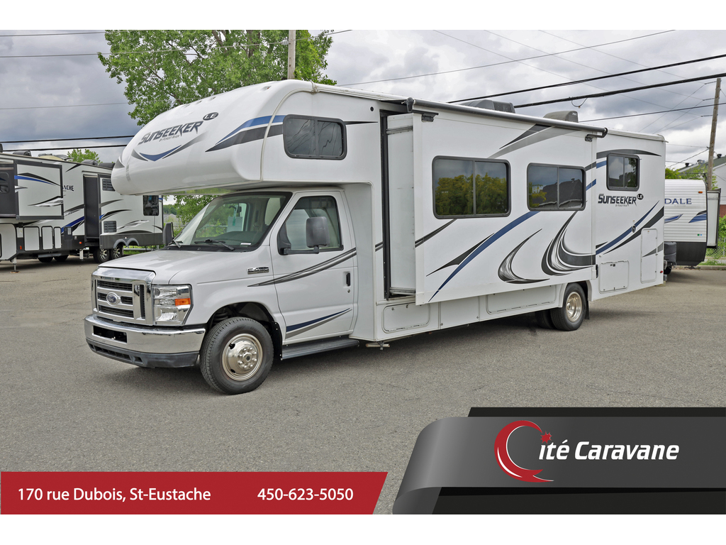 Forest River Sunseeker 2850 LE 1 extension CLASSE C Tissu : truffle , boiseries : weathered teak: Ford V-10, Prise 30AMP , chauffe-eau 6 gallons , chauffage 30,000BTU , A/C au toit 13.5BTU canalisé , murs de 2’’, fini gel-coat , toit en fibre de verre , auvent électrique , hitch de 5000lbs , lecteur AM/FM/CD/DVD,TV , frigidaire 6 pieds cube , tiroirs styles résidentiels , cuisinière a trois bruleur avec four ,TV, stores de nuit , plafond de 7 pieds , génératrice de 4000watts onan, batteries auxiliaire , micro-onde , sièges avant en tissue,panneaux de bois au frigidaire , arctic Pack ( 4 saisons ) , couvert en fibre de verre , matelas queen 60x74 , Prélart a grandeur Beauflor , antenne digitale, comptoirs de luxe , camera de recule + 890$/MOIS + taxes ! www.citecaravane.com 450-623-5050 170 RUE DUBOIS , ST-EUSTACHE, SUR LE BORD DE LA 640! UNE ENTREPRISE FAMILIALE A VOTRE SERVICE DEPUIS 1973 ! , DÉPOSITAIRE NUMÉRO 1 FOREST RIVER SUNSEEKER ! LE SPÉCIALISTE DU VR AU QUÉBEC ! ----------------------------------------------------------------------------------------------------------------------------------------------------------------------------------------------------------------------------------------------- Forest River Sunseeker 2850 LE 1 slide CLASS C fabric : truffle , wood : weathered teak : Ford V-10 , 30AMP , 6 gallon water heater , 30,000BTU heater , 13.5BTU ducted roof A/C , 2inch thick walls , gel-coat exterior , fiberglass roof , electric awning , 5000lbs hitch , spare tire , CD/DVD/AM/FM, TV , 6 cubic feet fridge , residential style drawers , 3 range burner oven , micro-wave , night shades , 7 feet high ceilings , 4000watts Onan generator, auxiliary battery, cloth front seats ,wood refrigerator panels, arctic pack ( 4 seasons ) ,fiberglass front cap , Serta 60x74 , Beauflor linoleum throughout , Digital Antenna ,Upgraded countertops , back up camera+ . 890$/MONTH +taxes. www.citecaravane.com 450-623-5050 ! CALL US TODAY ! Cité Caravane, 170 rue Dubois in Saint-Eustache, adjacent to the 640 highway. A FAMILY OWNED BUISNESS SINCE 1973 ! QUÉBEC s RV SPECIALIST !