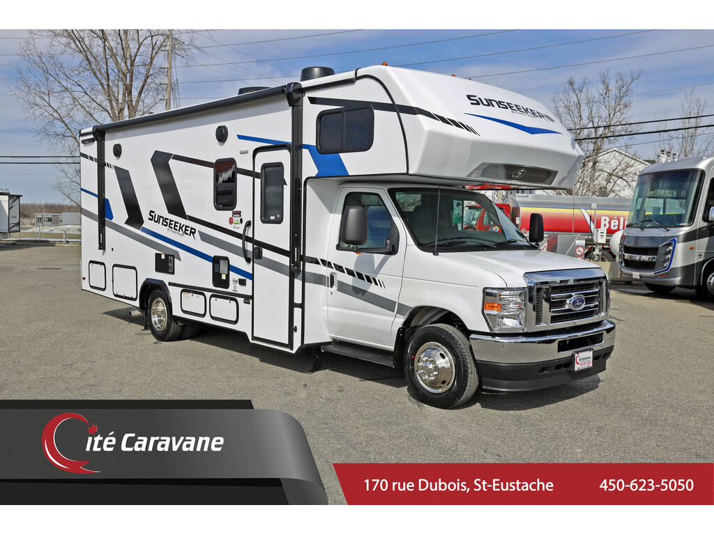 Forest River Sunseeker 2440 2 extensions CLASSE C Tissu : Dove grey boiseries : River teak , Ford V8 7.3L , Prise 30AMP , chauffe eau 6 gallons , chauffage 30,000BTU , A/C au toit 13.5BTU canalisé , ballons a air ride rite , murs de 2, fini gel-coat , toit en fibre de verre , auvent électrique , hitch de 7500lbs ,TV , frigidaire 10 pieds cube , tiroirs styles résidentiels , cuisinière a trois bruleur , stores de nuit , plafond de 7 pieds , génératrice de 4000watts onan, 2 batteries auxiliaires ,, micro-onde , sièges avant en cuirette appareils en stainless , arctic Pack ( 4 saisons ), couvert en fibre de verre , matelas queen , Prélart a grandeur Beauflor , antenne digitale, comptoirs de luxe, *PREMIUM CAMPING PACKAGE (mirroirs chauffants/électrique, caméra de recule et latérales, cinema maison 5.1 , black tank flush) + panneau solaire , 1373$+txs/MOIS ! www.citecaravane.com 450-623-5050 170 RUE DUBOIS , ST-EUSTACHE, SUR LE BORD DE LA 640! UNE ENTREPRISE FAMILIALE A VOTRE SERVICE DEPUIS 1973 ! , DÉPOSITAIRE NUMÉRO 1 FOREST RIVER SUNSEEKER ! LE SPÉCIALISTE DU VR AU QUÉBEC ! Forest River Sunseeker 2440 2 slides CLASS C fabric : dove grey , wood : River teak , Ford V8 7.3L , 30AMP , 6 gallon water heater , 30,000BTU heater , 13.5BTU ducted roof A/C , ride rite air suspension , 2inch thick walls , gel-coat exterior , fiberglass roof , electric awning , 7500lbs hitch , TV , 10 cubic feet fridge , residential style drawers , 3 range burner oven , micro-wave , night shades , 7 feet high ceilings , 4000watts Onan generator, 2 auxiliary batteries, , leatherette front seats , stainless steel appliances , arctic pack ( 4 seasons ) , fiberglass front cap , queen matress , Beauflor linoleum throughout , Digital Antenna ,Upgraded countertops,*PREMIUM CAMPING PACKAGE (heated/electric mirrors,back up and side cameras, 5.1 surround sound,black tank flush)+ Solar Panel . 1373$+txs/MONTH. www.citecaravane.com 450-623-5050 ! CALL US TODAY ! Cité Caravane, 170 rue Dubois in Saint-Eustache, adjacent to the 640 highway. A FAMILY OWNED BUISNESS SINCE 1973 ! QUÉBEC s RV SPECIALIST !