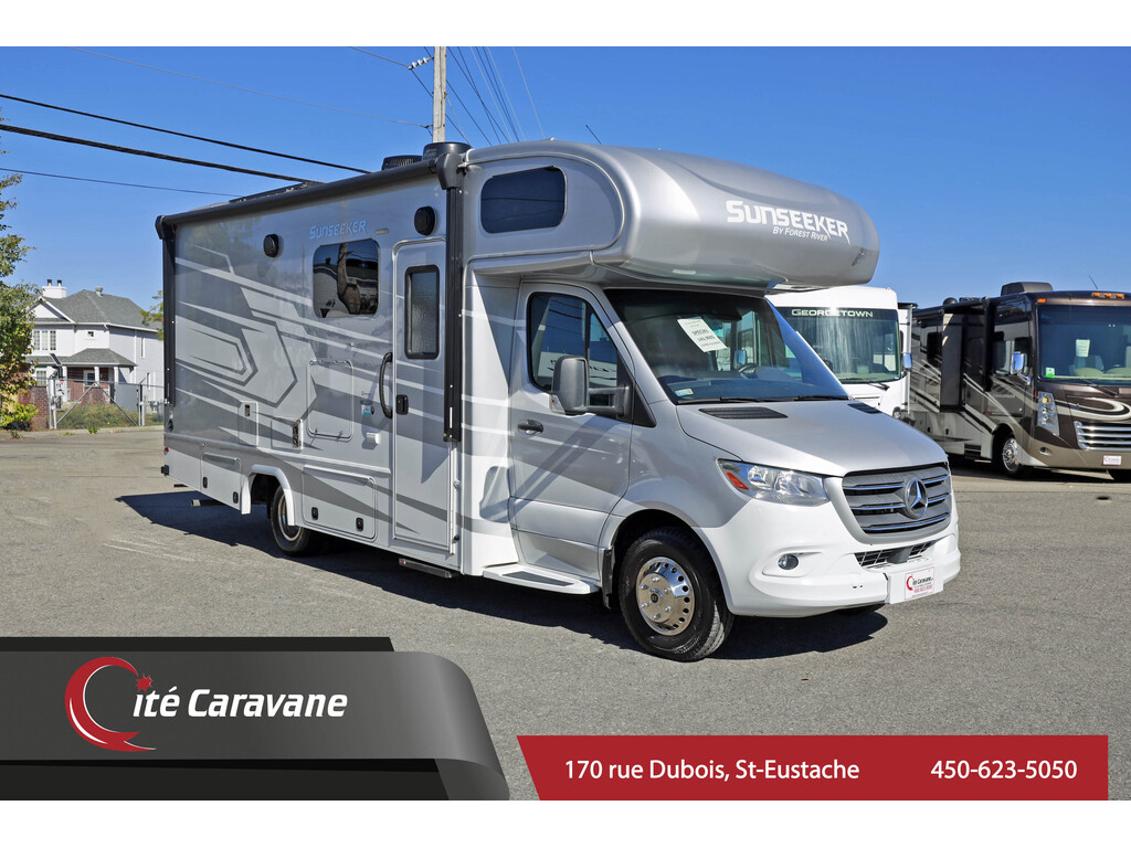 Classe C / B+ 24 pieds Mercedes Sprinter, Forest River Sunseeker MBS 2400T + crics hydraulics Mécanique Mercedes turbo diesel ! génératrice Onan 3600 watts LP , air climatisée canalisé 15,000btu avec heat pump , chauffage 30,000BTU , chauffe eau 6 gallons (gas + électrique) vitres de luxe , peinture complète , capacité de remorquage de 4200lbs , sièges pivotants ,artic pack (4saisons), télévision , lit queen (60x75) , réfrigérateur 10.7 pi cube , recouvrement de plancher Beauflor , toiture en fibre de verre , marche électrique , auvent électrique , batterie auxiliaire ,haut parleurs extérieur , ensemble de lumières DEL , coffres de luxe moulés , quick connect LP*PREMIUM CAMPING PACKAGE ( caméra de recul et latérales , cinéma maison 5.1 , black tank flush ,toile dextension ) 1298$+txs/MOIS MEILLEUR PRIX AU CANADA !! Forest River Sunseeker MBS, meilleur qualité prix 24 pieds Mercedes! www.citecaravane.com 450-623-5050, UNE ENTREPRISE FAMILIALE A VOTRE SERVICE DEPUIS 1973 !! LE SPÉCIALISTE DU VR AU QUÉBEC Venez nous voir dès aujourdhui chez Cité Caravane au 170 rue dubois à Saint-Eustache sur le bord de la 640 Classe C B+ , 24 foot Mercedes Sprinter , Forest River Sunseeker MBS 2400T + hydraulic jacks Mercedes turbo diesel bluetech ! 3600 watt LP generator Onan , 15,000BTU avec heat pymp , ducted roof A/C , 30,000BTU heating system , 6 gallon water heater ( gas/propane ) , luxury frameless windows , full body paint , 4200 pound towing capacity , swivel seats , artic pack (4seasons) , televison , queen size bed (60x75) , 10.7 ft cube refrigerator , Beauflor lineolium through out , fiberglass roof , electric step , electric awning , coach batterie ,exterior speakers , LED lighting , quick connect LP *PREMIUM CAMPING PACKAGE* ( back up and side cameras , surround sound system 5.1 , black tank flush , slide topper) 1298$+txs/MONTH Forest River Sunseeker MBS, best value for your money!!! Mercedes-Benz ! www.citecaravane.com 450-623-5050 ! CALL US TODAY ! Cité Caravane, 170 rue Dubois in Saint-Eustache, adjacent to the 640 highway. A FAMILY OWNED BUISNESS SINCE 1973 ! QUÉBEC s RV SPECIALIST !