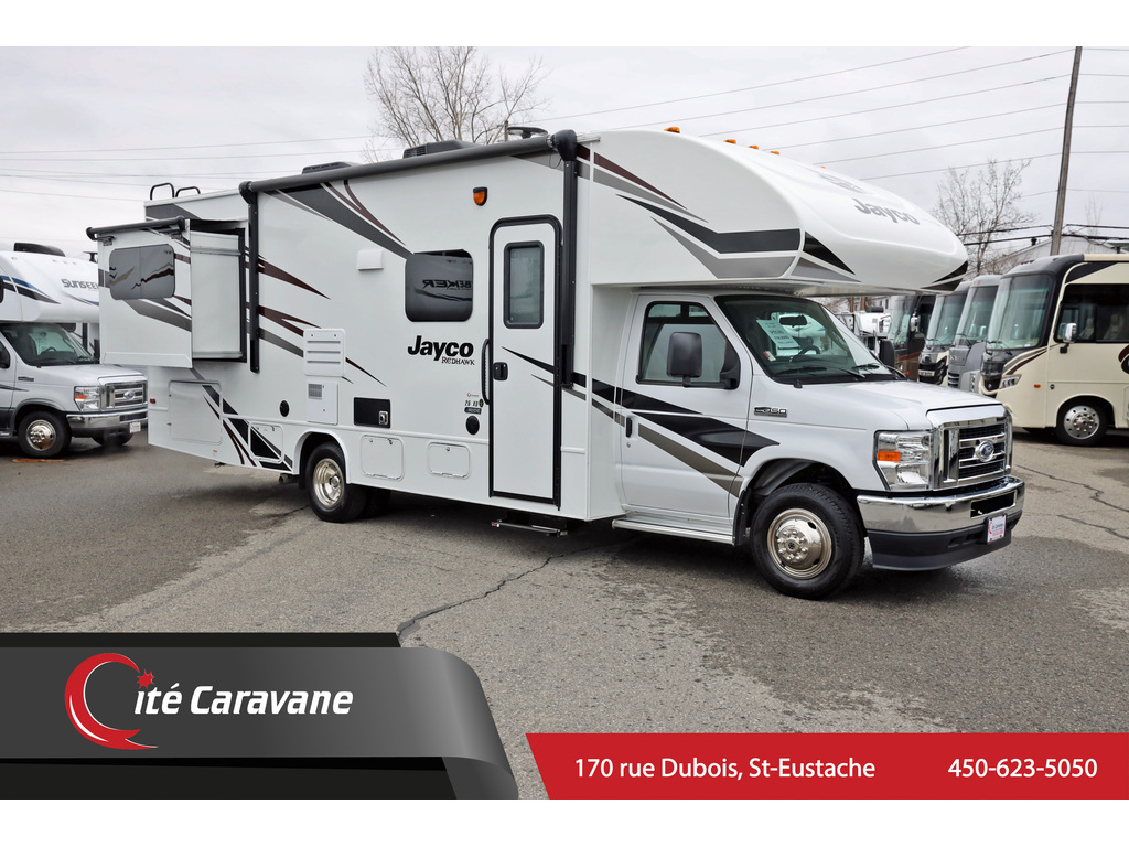 Classe C Jayco Redhawk 26XD 2 extensions ! Mécanique FordV8 7.3L ! Caméra arrière, murs finis gel coat, auvent électrique, génératrice 4000 watts Onan, échelle arrière, cable 30 ampères, coffres roto-moulés, attache-remorque de 5000 lbs, toiture en TPO d’une seule pièce, batterie auxiliaire etc.. Réfrigérateur 8 pi.cu. Propane/électrique, évier double avec couverts, micro-onde , hotte de poele , antenne analogique, dinette en cuirette, rangement sous la dinette, sofa en cuirette, lit queen dans la chambre, garde-robe, douche, réservoir d'eau chaude propane , lit au-dessus de la cabine, revêtement de plancher en linoleum,air climatisé de 13,500 BTU canalisée, chauffage de 30,000 BTU au propane, lumières DEL, rideaux intimités etc. 1090+txs/MOIS www.citecaravane.com 450-623-5050 ! Une entreprise familiale a votre service depuis 1973 ! 170 Rue Dubois St-eustache Classe C Jayco Redhawk 26XD 2 slide outs! Ford V-8 7.3LL! Rear camera gel coat finished walls, electric awning, 4000 watt Onan generator, rear ladder, 30 amp cable, roto-molded trunks, 5000 lbs trailer hitch, one piece TPO roof, auxiliary batterie etc. 8 cu.ft. refrigerator propane/electric, stainless double sink, microwave, stove hood, analog antenna, leatherette dinette, storage under the dinette, leatherette sofa, queen bed in bedroom, wardrobe, shower, hot water tank propane, bed above the cabin, linoleum floor covering, 13,500 BTU ducted air conditioning, 30,000 BTU propane heating, LED lights, privacy curtains, etc. 1090$+txs/MONTH www.citecaravane.com 450 -623-5050! A family business at your service since 1973! 170 Rue Dubois St-eustache