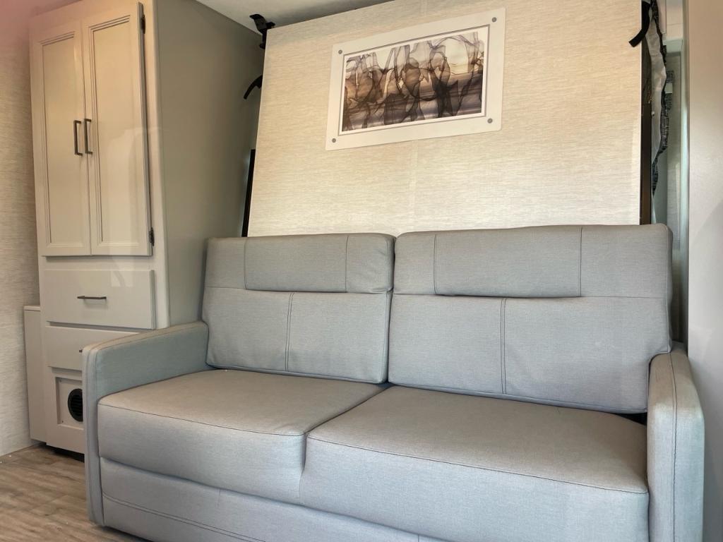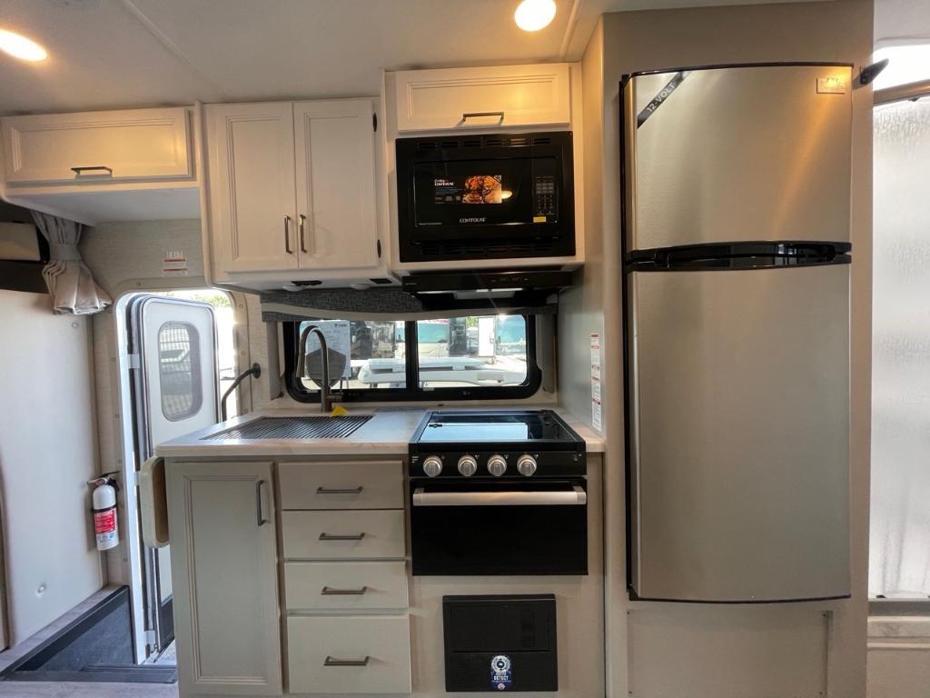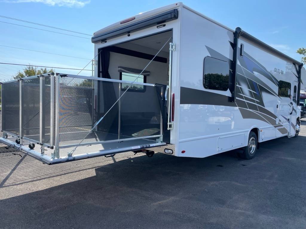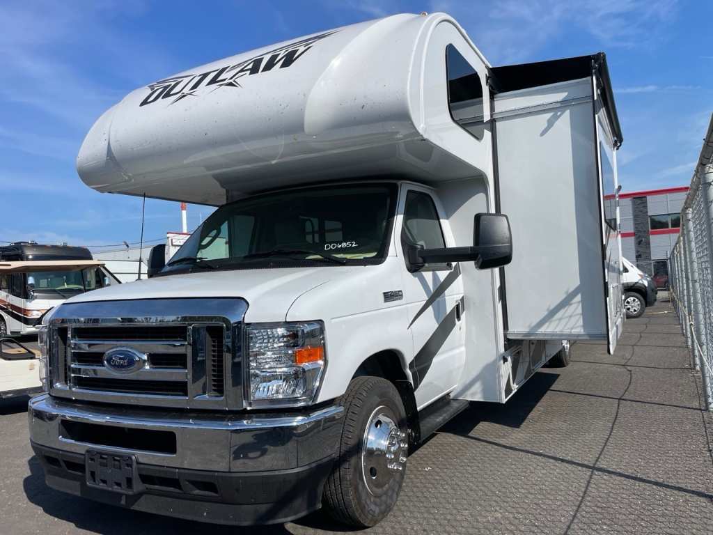 Thor Motor Coach Outlaw 29T ESSENCE 2025 Le Thor Motor Coach Outlaw 29T 2025 est un motorisé Classe C de type CARGO / toy hauler, une rareté dans cette catégorie. Il est parfait pour les amateurs de plein air qui souhaitent voyager avec des équipements comme motos, VTT, vélos électriques ou autres jouets récréatifs tout en profitant d’un intérieur confortable et bien aménagé. Voici un portrait complet de ce modèle unique : ?? Spécifications techniques Type : Classe C CARGO (toy hauler) Longueur : 31,2 pieds (˜ 9,5 mètres) Châssis : Ford E-450 Moteur : Ford 7.3L V8 à essence, puissant et robuste, parfait pour le transport de charge tout en gardant une conduite souple Cylindres : 8 Transmission : Automatique (non précisée mais typiquement TorqShift avec ce moteur) Extension : 1 slide-out, qui augmente l’espace intérieur dans la zone principale (souvent salon ou chambre) ??? Aménagement & confort Capacité de couchage : Jusqu’à 6 personnes Sofa avec lit escamotable : Espace multifonctionnel, idéal pour détente ou nuitée Lit en mezzanine au-dessus de la cabine : Typique des Classe C, parfait pour enfants ou invités Chambre fermée avec lit queen : Intimité et confort pour les occupants principaux Cuisine complète : Cuisinière 3 brûleurs Micro-ondes Réfrigérateur : Grande capacité pour plusieurs jours d’autonomie Salle de bain complète : Douche, toilette et vanité avec lavabo — tout le confort d’une vraie salle de bain ?? Particularité ''CARGO'' Le garage arrière est ce qui distingue l’Outlaw 29T : Peut transporter motos, petits VTT, vélos, équipement sportif, etc. Zone de garage modulable, parfois utilisable comme second espace de vie ou de couchage selon la configuration Rampe d’accès arrière facilitant le chargement/déchargement ? En résumé Le Thor Outlaw 29T 2025 est l’option parfaite pour les aventuriers actifs, combinant le confort d’un motorisé Classe C classique avec la polyvalence d’un espace garage intégré. C’est un véhicule tout-en-un : hébergement, transport et garage mobile. Il est idéal pour : Les motards, cyclistes ou passionnés de sports motorisés Les familles qui veulent un espace pour entreposer du matériel volumineux Ceux qui souhaitent un motorisé polyvalent pour le loisir et l’aventure *** Prendre note que les photos et les options décrites peuvent différées *** Toute l'équipe de Centre du VR est fière de vous présenter le plus vaste inventaire de véhicules récréatifs neufs et d'occasions à vendre au Québec. Vous y trouverez notamment les marques Columbus, Rockwood, Kodiak, Coleman, Cruiser RV, Flagstaff, E-Pro, Springdale, Sunset Trail, Cougar, Chaparral, Bontrager Outdoors, motorisés Axis,Hurricane, Outlaw, Coachmen Cross Trail, Prism, Echelon,Fleetwood, Four winds, Beyon, Nova, Patriot et Embassy Dolphin. Remorques N&N, Apogée et Armorteck sont aussi disponibles. En inventaire pour vous, la série de génératrices Ducar. Vous avez un coup de coeur ? Envoyez-nous une demande d'information,financement sur place. N'oubliez pas également que rien ne vaut une visite du modèle qui vous intéresse pour vous aider à prendre une décision éclairée. Passez donc nous voir afin de jeter un coup d'oeil plus détaillé à nos caravanes et caravanes à sellettes neuves.