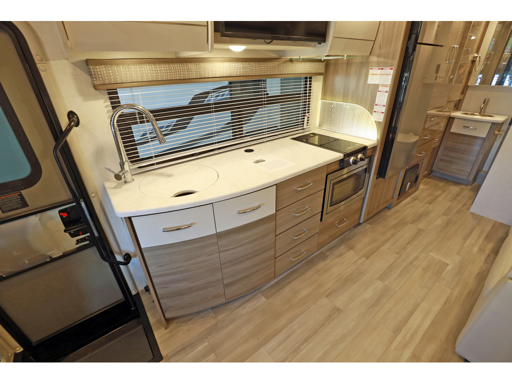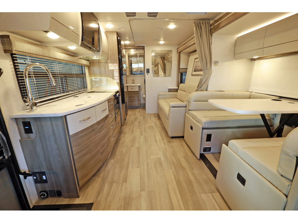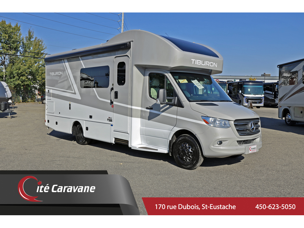 vente en cours - sale pending Thor Motor Coach Tiburon Mercedes Diesel Sprinter modèle 24FB + crics hydraulics Exterior : Monticello , Interieur : Cafe Mocha , boiserie : modern Mocha Ce véhicule récréatif de luxe mesure environ 24 pieds 9 pouces de longueur et roule sur le châssis Mercedes Benz Sprinter de premier ordre équipé d'un système d'assistance au freinage actif, d'une assistance à l'attention, d'une assistance de voie active, d'un système d'essuie-glace humide et d'un régulateur de distance Distronic Plus. Vous trouverez également des CRICS arriere, un chauffe-eau sans réservoir, Génératrice et les armoires ultra-hautes de gamme de TMC qui distinguent cet autocar de la concurrence! L'équipement en option comprend le magnifique extérieur peint pour tout le corps, la sangle de sécurité pour enfant unique et le toit AC. Le tout nouveau Tiburon Sprinter comprend également un attelage de 5000 lb, un capuchon avant en fibre de verre avec puits de lumière, un auvent de terrasse électrique sans bras avec éclairage à DEL intégré, des fenêtres sans cadre, une radio de tableau de bord multimédia avec Bluetooth, des rétroviseurs extérieurs chauffants et à distance, un système de secours, un pivot chaises capitaines, guides de tiroirs à roulement à billes métalliques pleine extension, Rapid Camp +et bien plus www.citecaravane.com 450-623-5050 170 rue dubois st-eustache J7P 4W9 Thor Motor Coach Tiburon Mercedes Diesel Sprinter Model 24FB. + hydraulic jacks Exterior : Monticello , Interior : cafe mocha , cabinets : Modern mocha This Luxury RV measures approximately 24 feet 9 inches in length and rides on the premier Mercedes Benz Sprinter chassis equipped with an Active Braking Assist system, Attention Assist, Active Lane Assist, a Wet Wiper System and Distance Regulator Distronic Plus. You will also find rear jacks, a tank-less water heater, an generator and the ultra-high-line cabinetry from TMC that set this coach apart from the competition! Optional equipment includes the beautiful full-body paint exterior, single child safety tether & Roof A3C. The all new Tiburon Sprinter also features a 5,000 lb. hitch, fiberglass front cap with skylight, an armless power patio awning with integrated LED lighting, frameless windows, a multimedia dash radio with Bluetooth , heated & remote exterior mirrors, back up system, swivel captain chairs, full extension metal ball-bearing drawer guides, Rapid Camp+, and much more www.citecaravane.com 450-623-5050 170 rue dubois st-eustache J7P 4W9