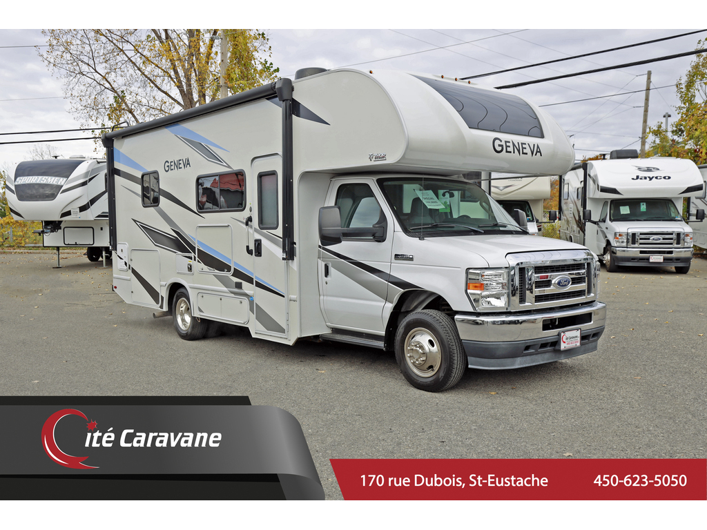 Thor geneva 25V Classe C 25 pieds 2 pouces 1 extension a lit murphy , Ford 7.3L V8 engine (325 HP/450 lb-ft torque , chauffage 30,000BTU , air climatisé , frigidair 10 pi cube , camera de recule , reservoir de 40 gallon d'eau fraiche , bonbonne de propane , TV , auvent électrique , salle de bain complète , lit queen centrale , etc etc etc www.citecaravane.com 450-623-5050 170 rue dubois , St-eustache J7P 4W9